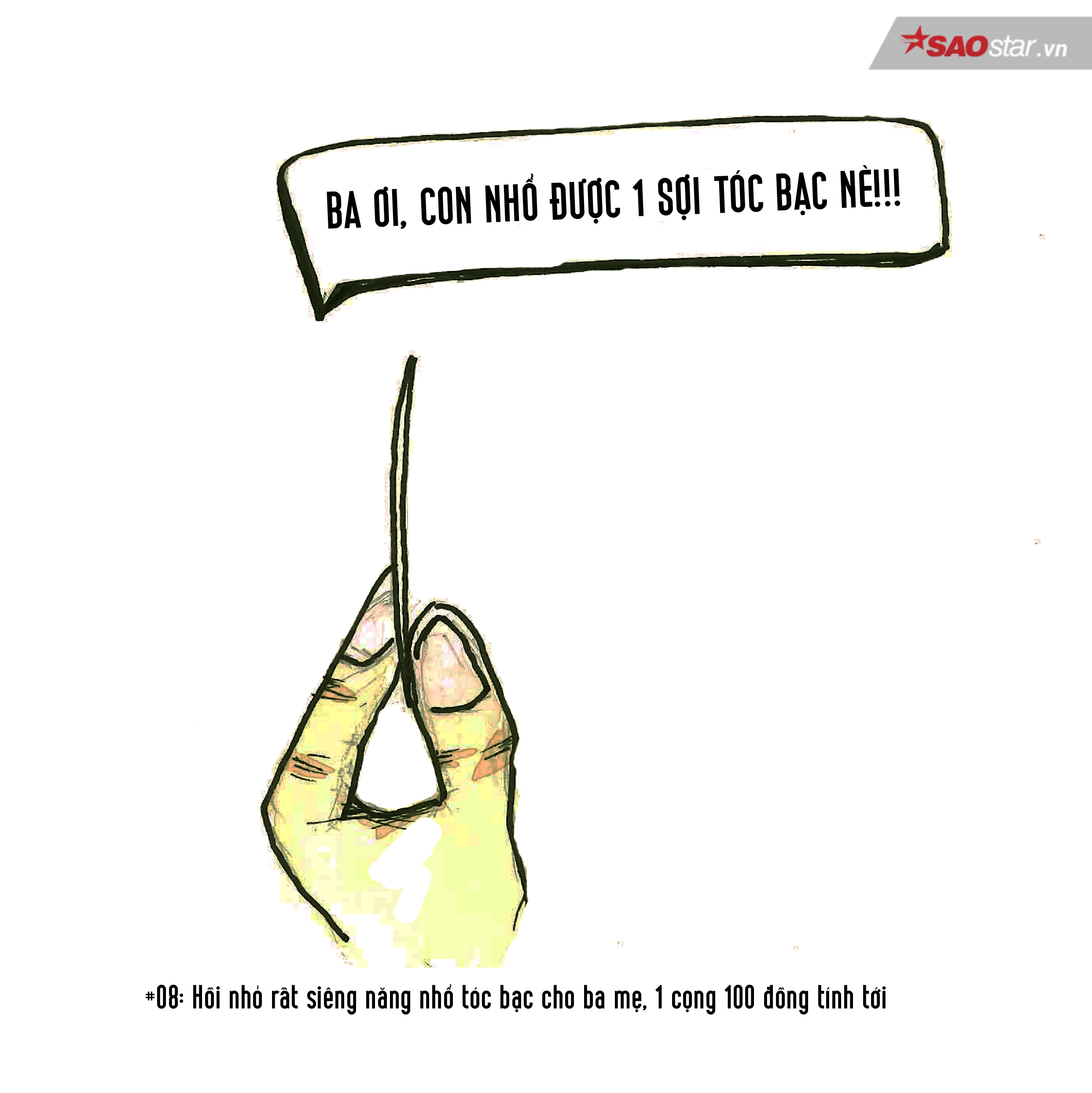 Ngày xưa tìm được vài sợi tóc bạc cho ba là vui lắm chỉ mong tìm được càng nhiều càng tốt. Lớn lên chút thì đi mua dùm ba chai thuốc nhuộm đen. Đến giờ chỉ mong tóc ba mẹ thôi đừng bạc thêm nữa…
