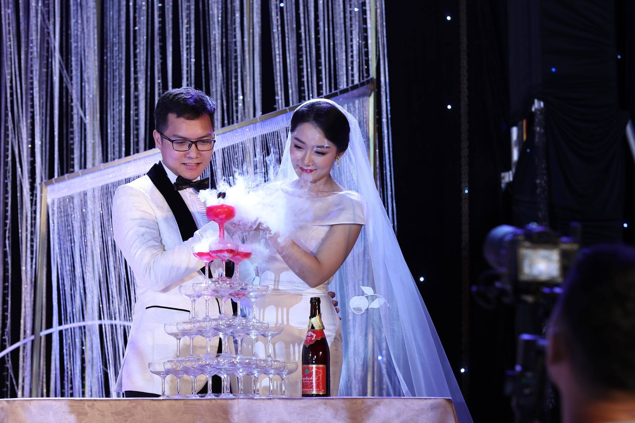 Cô dâu, chú rể cùng nhau rót rượu trong lễ thành hôn