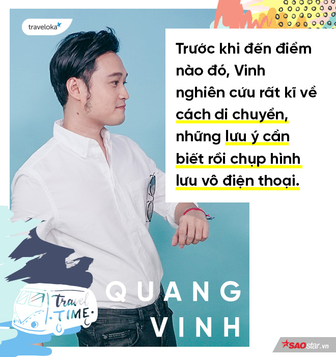 - Trước khi đến điểm nào đó, Vinh nghiên cứu rất kĩ về cách di chuyển, những lưu ý cần biết rồi chụp hình lưu vô điện thoại. Bên cạnh đó, Vinh cũng có thể nói được tiếng Anh, điện thoại truy cập bản đồ mọi lúc nên hầu như không bị lạc.