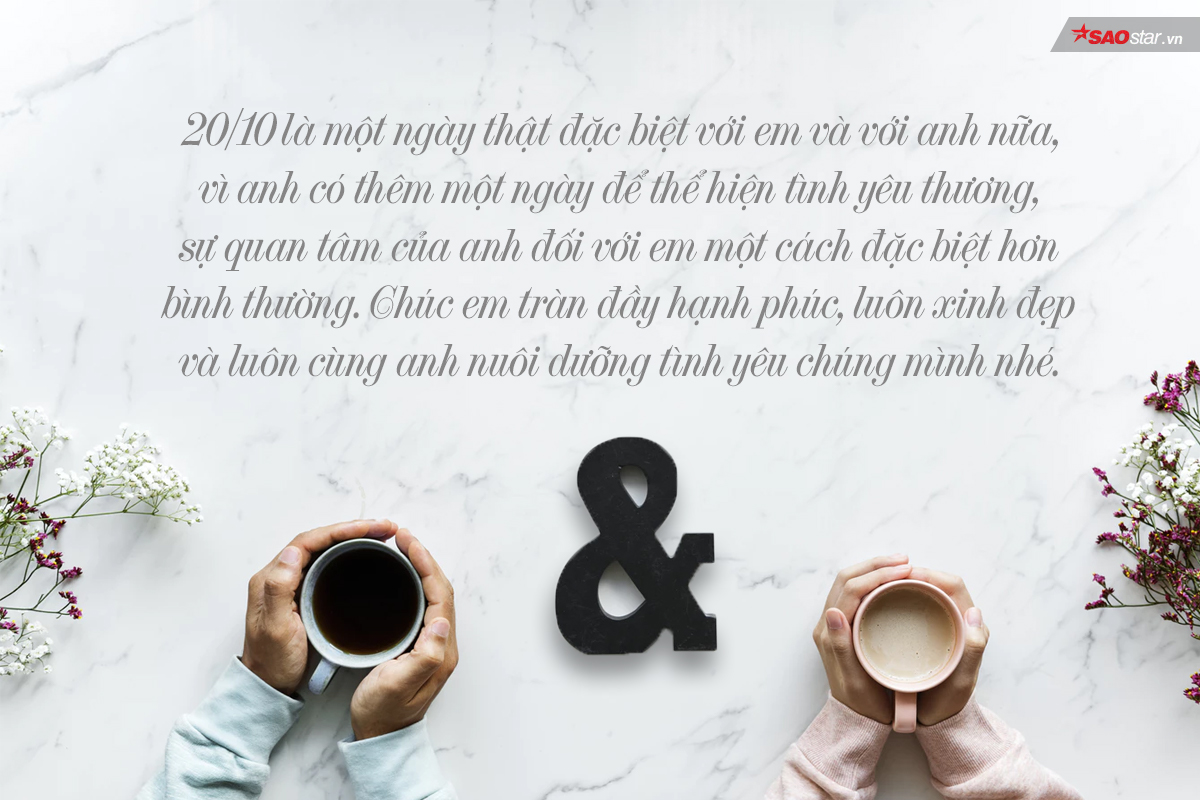 Anh sẽ không chúc em điều gì cả vì em xứng đáng được hưởng tất cả những điều tốt đẹp nhất trên đời này. Ngày 20/10 trọn niềm vui em nhé!