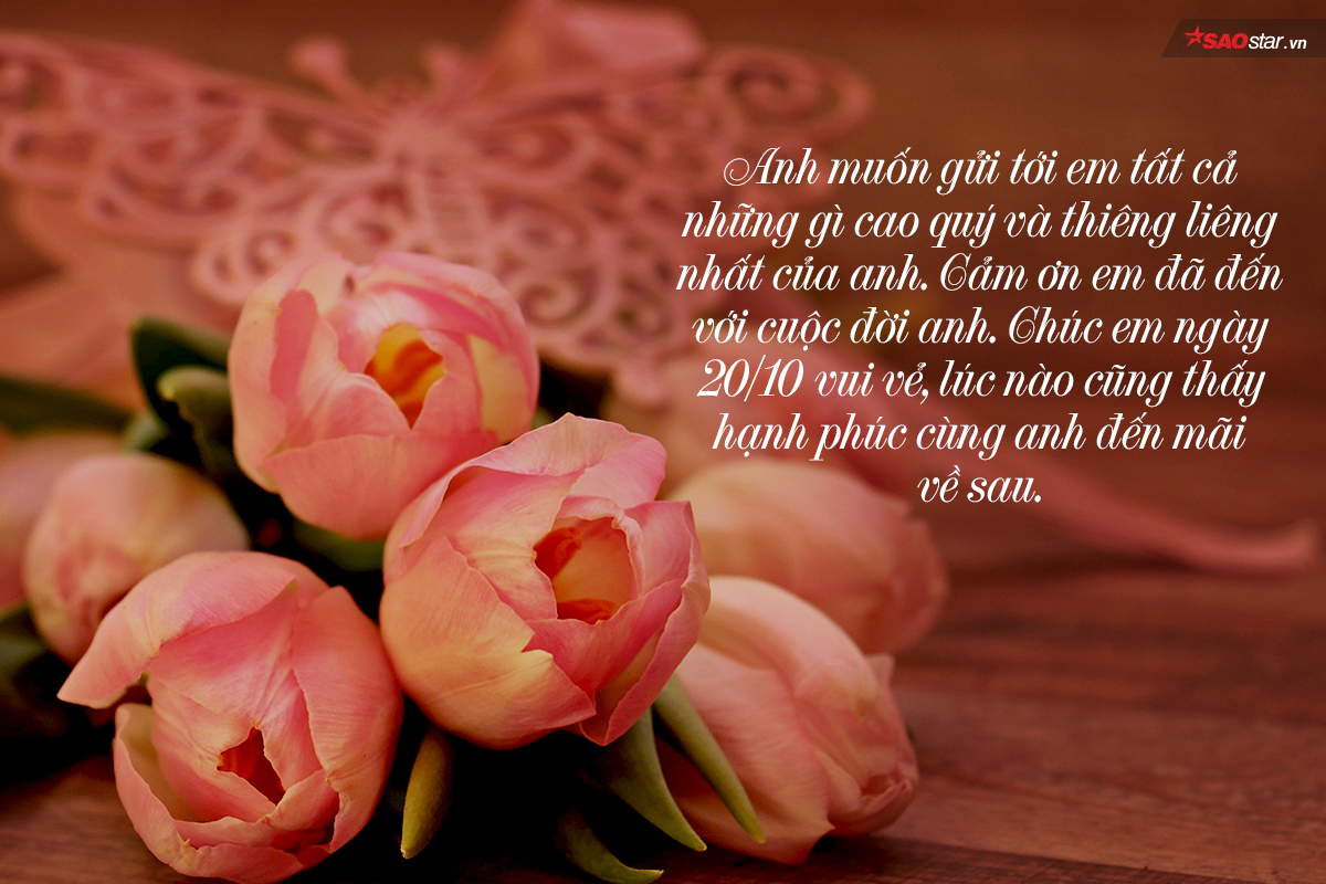 Anh muốn gửi tới em tất cả những gì cao quý và thiêng liêng nhất của anh. Cảm ơn em đã đến với cuộc đời anh. Chức em ngày 20/10 vui vẻ, lúc nào cũng thấy hạnh phúc cùng anh đến mãi về sau.