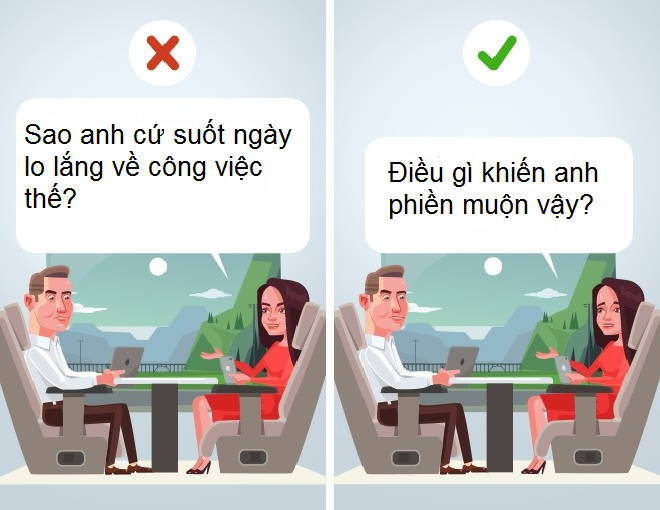 Khi chúng ta nói ra những câu đại loại như “Việc này thật vô nghĩa!”, “Đừng quá thất vọng vào công việc!”, hay “Đến khi nào anh mới lo lắng về chuyện đó đây?”, người ấy của bạn sẽ cảm thấy cực kì tự ái. Khi quá mệt mỏi, họ mới tìm đến bạn để tâm sự, mong muốn được giải tỏa phần nào nỗi niềm. Điều cần làm là bạn nên lắng nghe câu chuyện một cách thật chân thành!