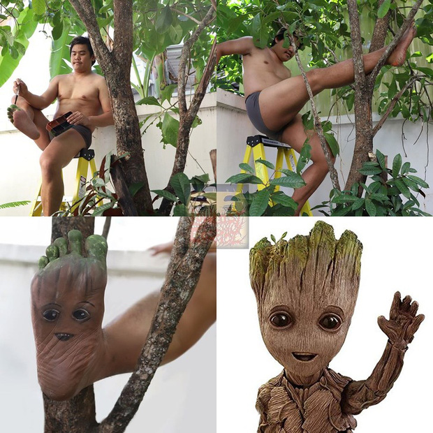 Nhân vật Groot đình đám trong phim Guardian Of Galaxy của vũ trụ điện ảnh Marvel phiên bản thiếu kinh phí.