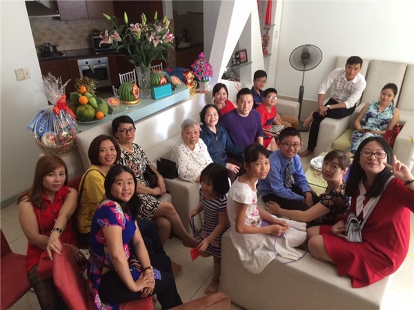 Bằng Kiều bên mẹ và một số anh chị em mình