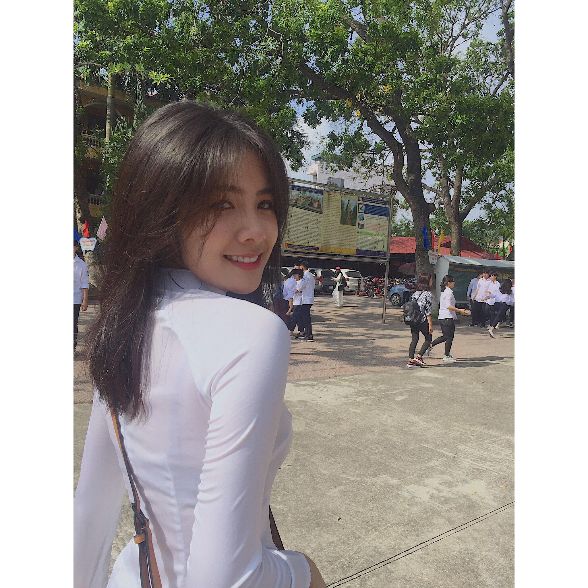 Cô gái nhỏ nhắn yêu kiều này là Thu Giang (17 tuổi), học sinh lớp 12 trường THPT Lý Thái Tổ, Từ Sơn, Bắc Ninh. Vì quá đỗi xinh đẹp trong tà áo dài trắng ngày khai trường mà Giang đã trở thành tâm điểm tìm kiếm của cư dân mạng. Nụ cười sáng, bờ vai nghiêng mong manh của 10X xinh xắn đã khiến bao trái tim phải loạn nhịp.
