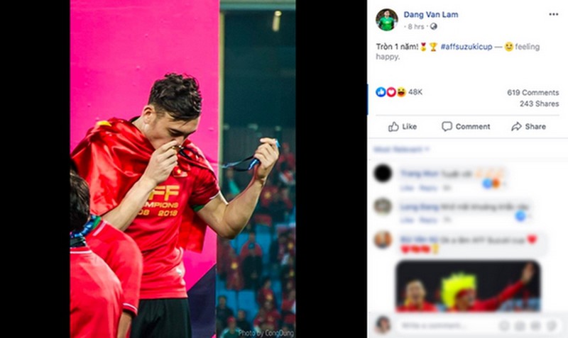 Cập nhật mới nhất trên Facebook của thủ môn điển trai là nhắc lại một kỷ niệm đáng nhớ cách đây 1 năm.