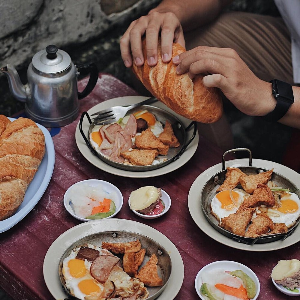 Hãy thử một buổi sáng cuối tuần, phóng con xe tới Hòa Mã mà ghé làm chảo bánh mì thịt nguội và trứng ốp la, vừa thấy mình trôi chậm đi cùng Sài Gòn, vừa thấy những hoài niệm một thuở trở về trong con hẻm nhỏ thân thương.