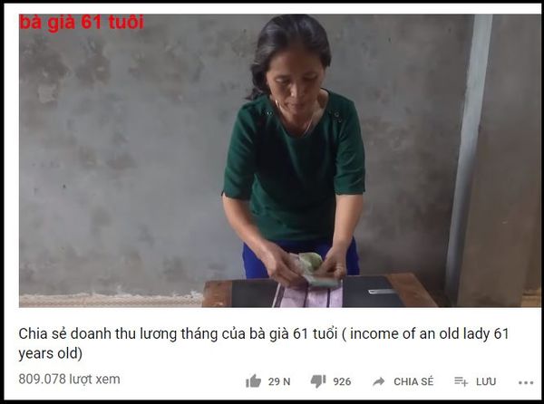 Nói đến Youtuber thường người ta sẽ nghĩ đến những người trẻ tuổi, hoạt ngôn với những video được đầu tư kĩ lưỡng về chất lượng. Tuy nhiên, một hiện tượng Youtube mới nổi đã “đập tan” những tiêu chuẩn đó và thu về một lượng sub lớn đó là “bà già 61 tuổi”. Sự xuất hiện đầy bất ngờ của “Youtuber lớn tuổi nhất Việt Nam” trở thành tâm điểm khá hot được cộng đồng facebook lan truyền thông tin nhanh chóng.