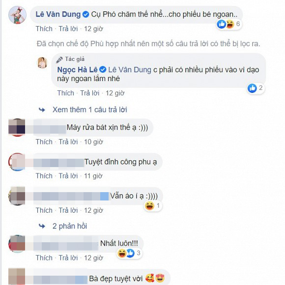 Hình ảnh trên nhận được nhiều sự quan tâm từ bạn bè và người hâm mộ của nam nghệ sĩ. Bên cạnh những lời khen ngợi NSND Công Lý, không ít người còn bày tỏ sự ngưỡng mộ với Ngọc Hà vì được bạn trai yêu thương, chiều chuộng hết mực và sẵn sàng phụ giúp việc nhà.