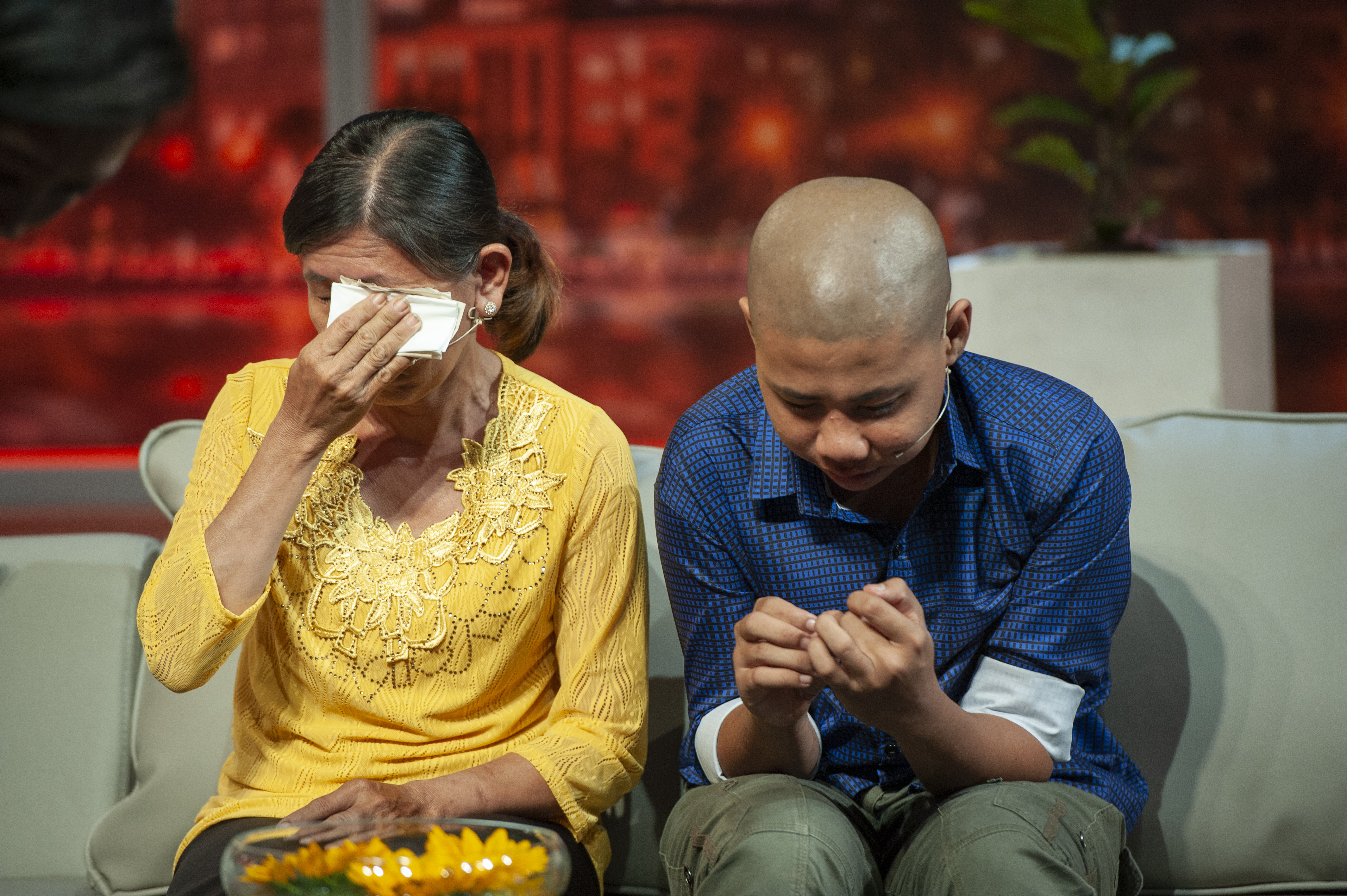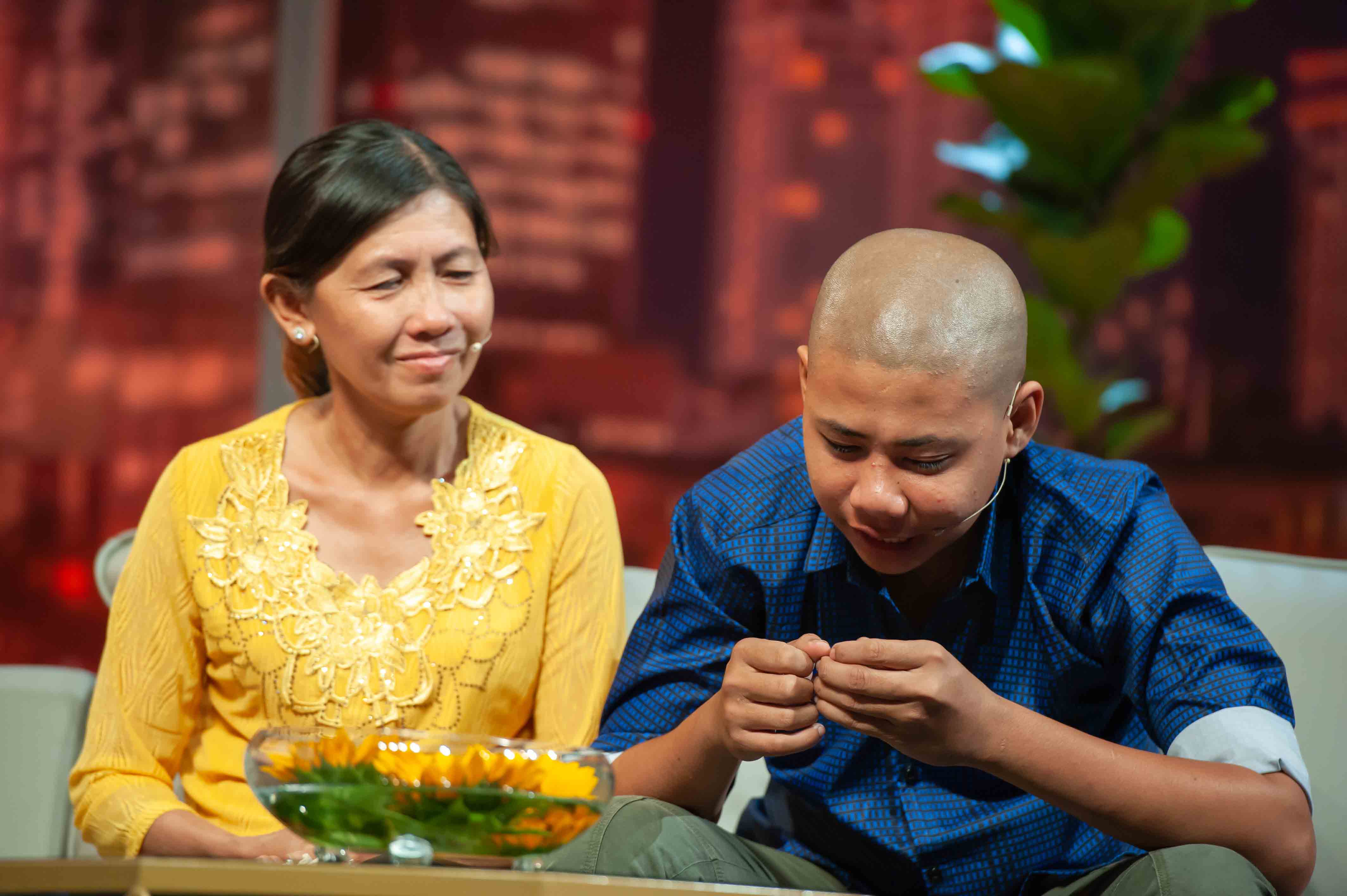 Quá xúc động MC Hồng Vân xót xa hỏi Tâm rằng: “Nếu mẹ không còn bên cạnh Tâm nữa thì tâm sẽ như thế nào”. Giọng run run, Tâm rưng rưng nói: “Dạ con sẽ chết sau đó sà vào lòng mẹ”. Câu trả lời thật lòng cùng biểu cảm lúng túng của cậu bé khiến cả trường quay đều trực chờ rơi nước mắt.