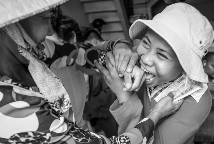 Sau đó, để con tiếp tục trị bệnh mẹ Ánh Hồng phải vay nặng lãi và may mắn Tâm đã khỏe lên nhiều sau khi phẫu thuật. “Tâm thường xuyên cười nói nhưng có lúc không kiểm soát được hành động bản thân. Bé hay cắn và chạy nhảy nên mỗi lần bán vé số ở những nơi đông dân cư, tôi phải lấy dây dù cột tay hai mẹ con lại để bé khỏi lạc đường. Có những lúc giận mẹ vì không được đi chơi bé còn xé vé số nhưng bây giờ bé đã hiểu và không làm như vậy nữa”, chị hồng rưng rưng nói.