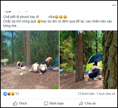 Mới đây, bức ảnh cô gái ăn mặc hở hang khi đi phượt trên núi với hội bạn con trai đã được cộng động mạng chia sẻ kèm những caption, bình luận thiếu tế nhị. Trong ảnh, cô gái trẻ mặc quần dài và chiếc áo lót nhiều dây, loại đang mốt hiện nay. Xung quanh là tầm 3 chàng trai. Cả nhóm đang lúi húi nhóm lửa hoặc nấu ăn gì đấy. Cảnh tượng này khiến nhiều người rất ngạc nhiên.
