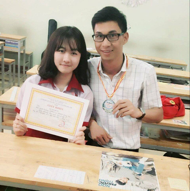 Hà Vi cùng thầy giáo Nguyễn Phú - người mà em xem như một người anh, người cha đã dìu dắt em trong cuộc sống và học tập.