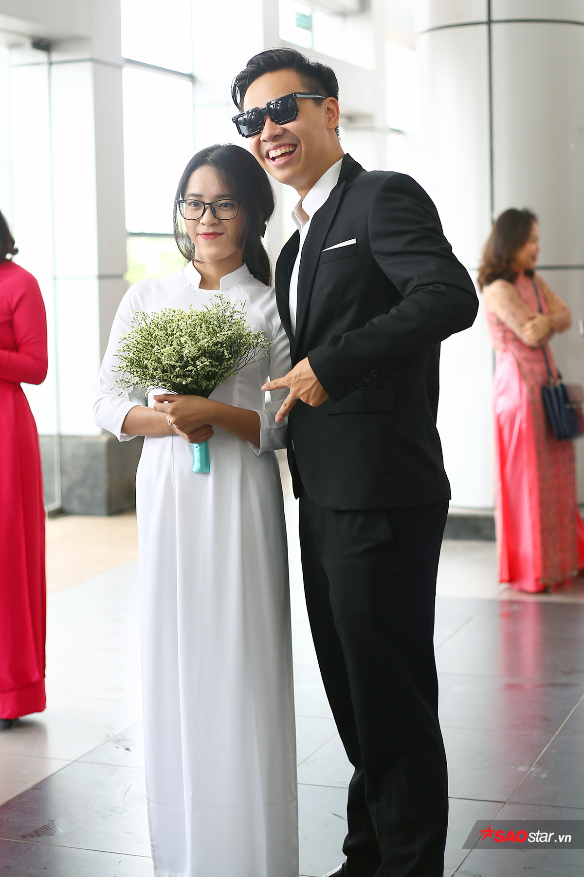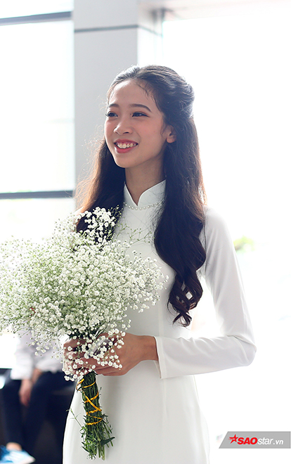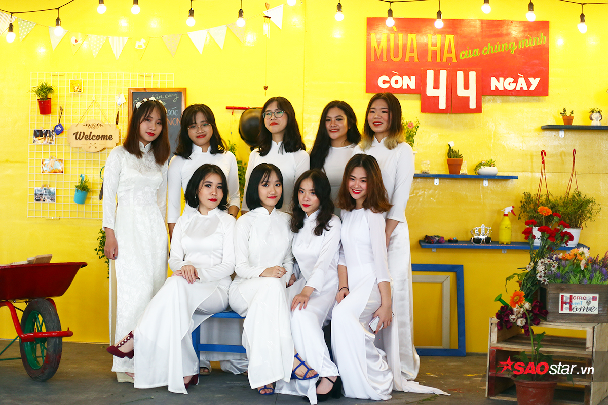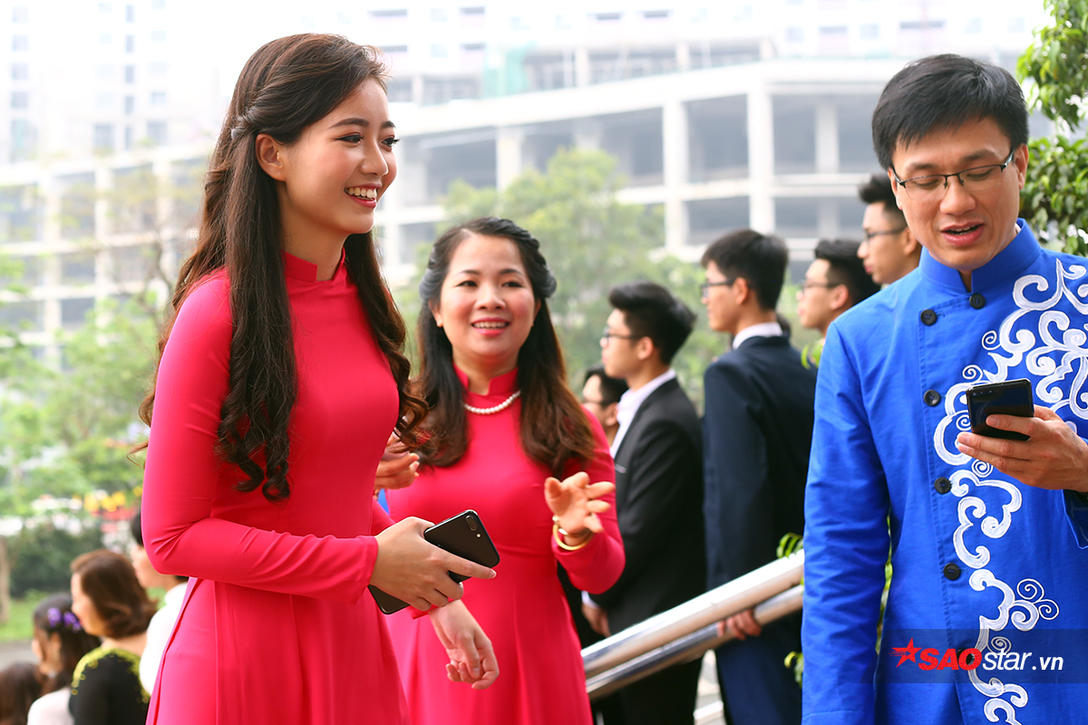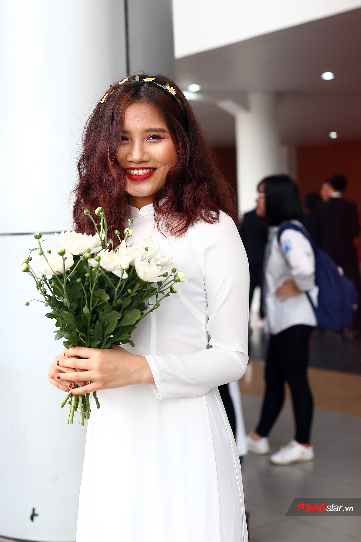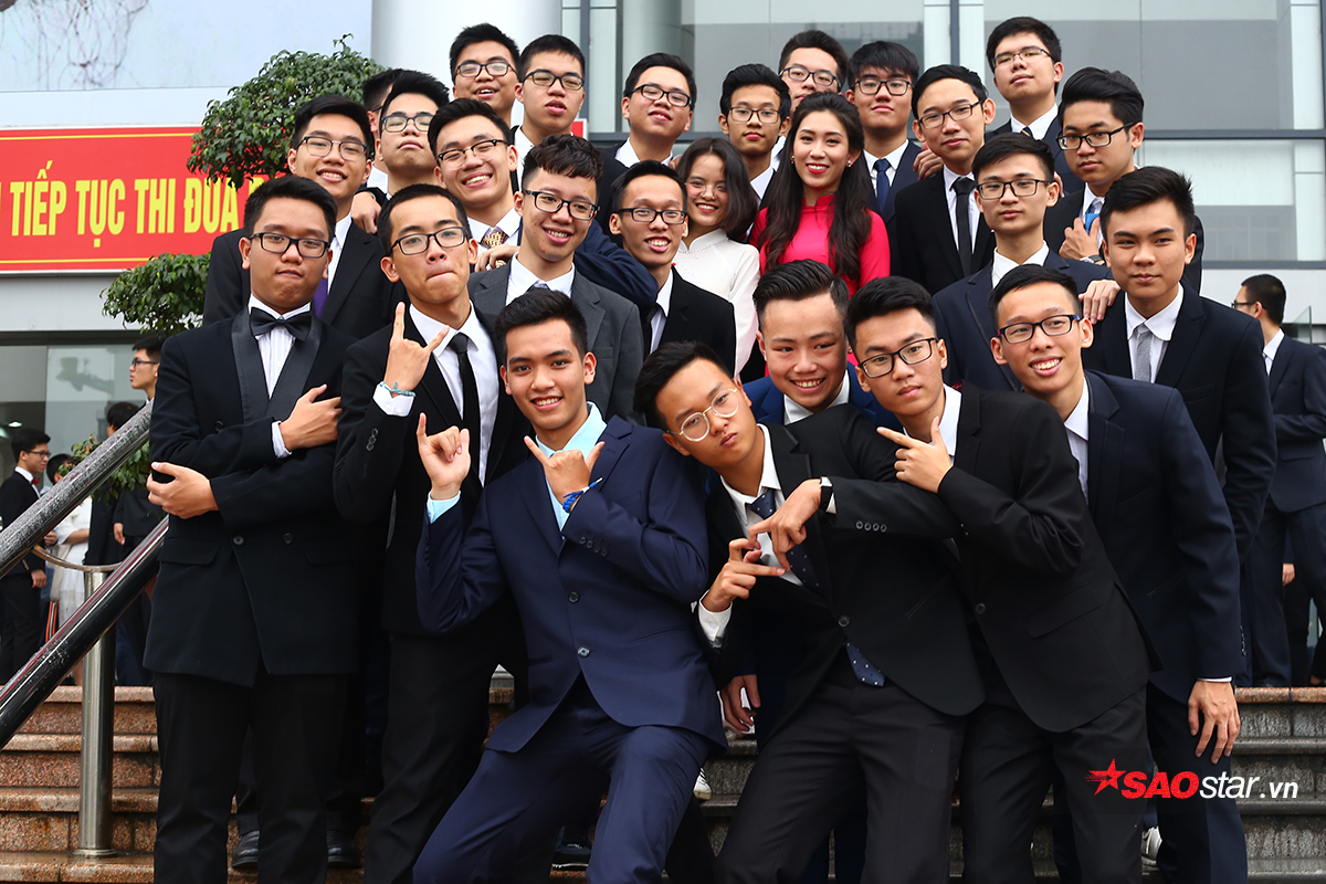Trong khi các bạn nữ vô cùng xinh xắn, rạng rỡ với tà áo dài trắng, thì các bạn nam lại lịch lãm với bộ vest chỉn chu.