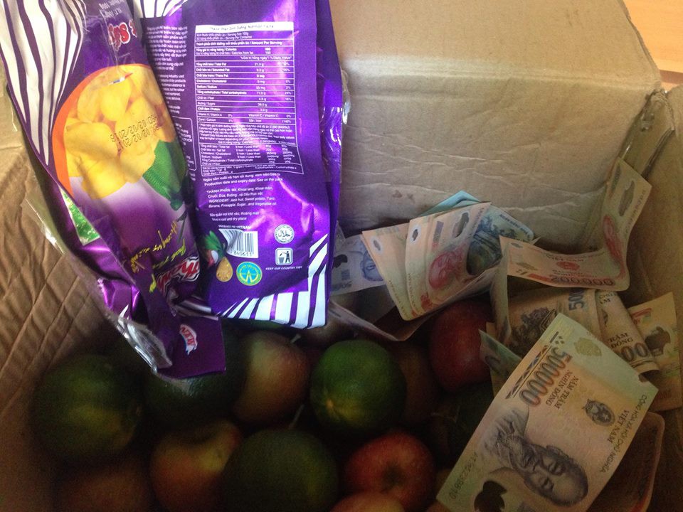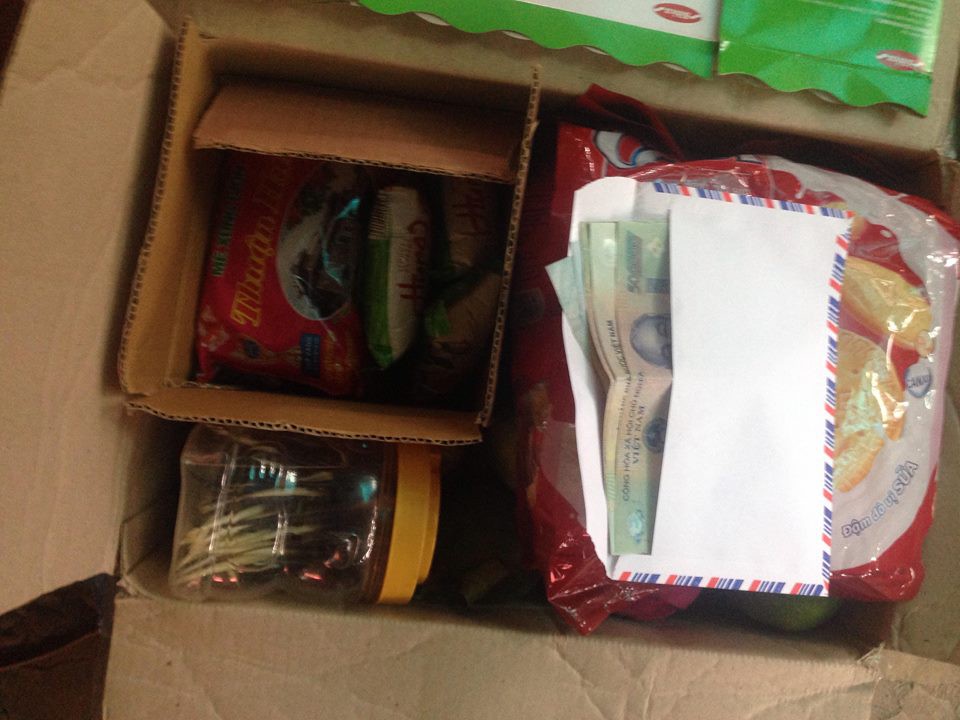 Đồ ăn và tiền mặt của mẹ gửi cho con gái cưng.