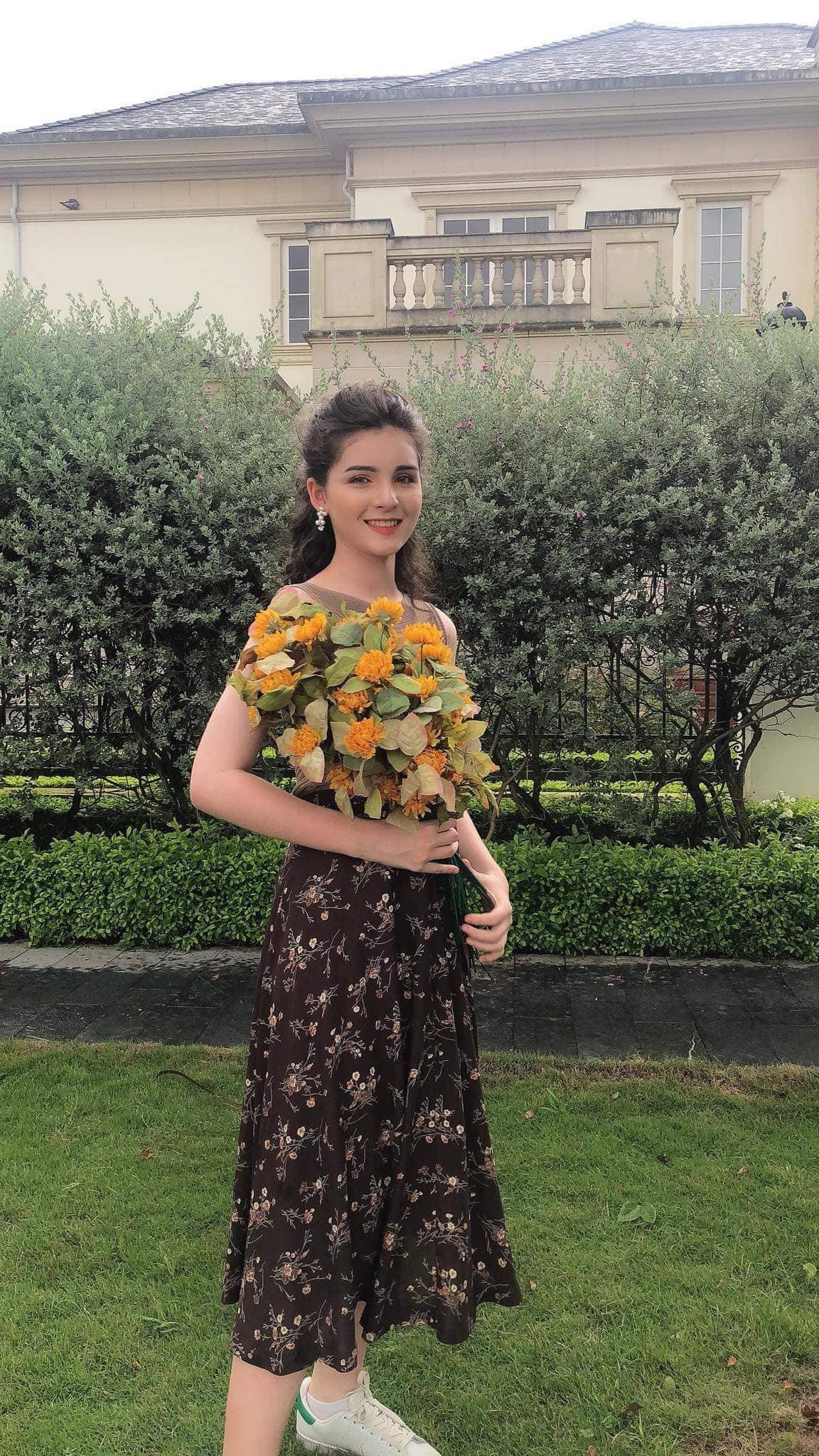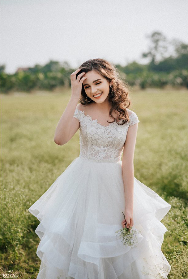 Ngọc Hằng có làn da trắng sứ, dáng người thanh mảnh, mái tóc màu hạt dẻ và nụ cười tỏa nắng đậm chất thiếu nữ xứ sở bạch dương