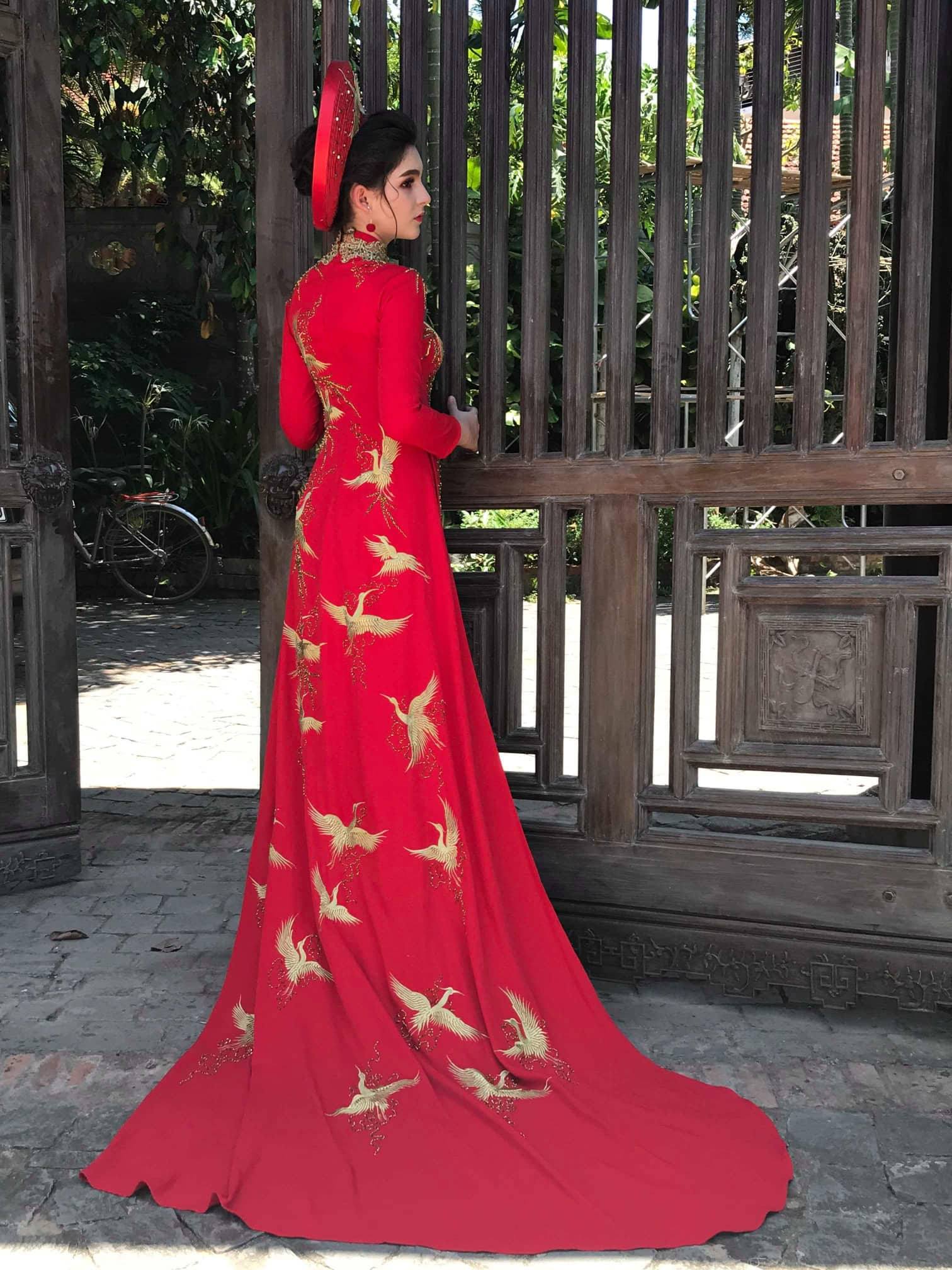 Với chiều cao 1m70, Ngọc Hằng rất duyên dáng khi diện trang phục áo dài truyền thống Việt Nam
