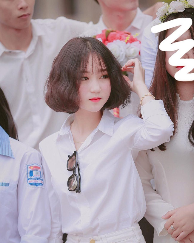 Bức ảnh đập vào mắt người xem ngay lập tức bởi vẻ xinh xắn như búp bê của nữ sinh này. Chỉ cần diện sơ mi trắng, tóc ngắn cá tính và một gương mặt tròn xoe như búp bê - nữ sinh đã thu về hơn 10 nghìn lượt thích và hàng trăm bình luận khen ngợi.