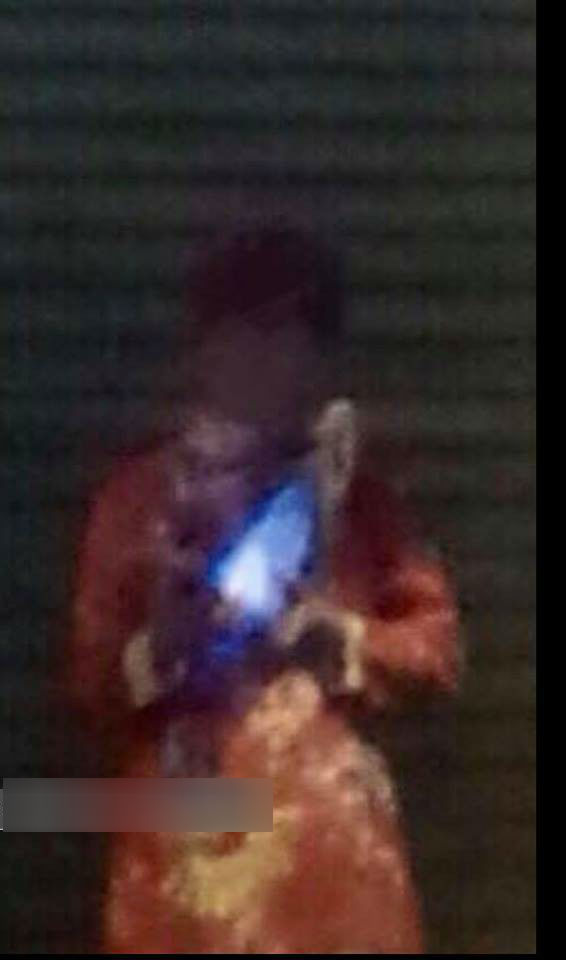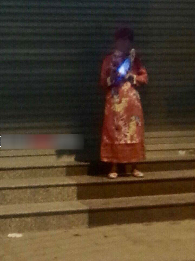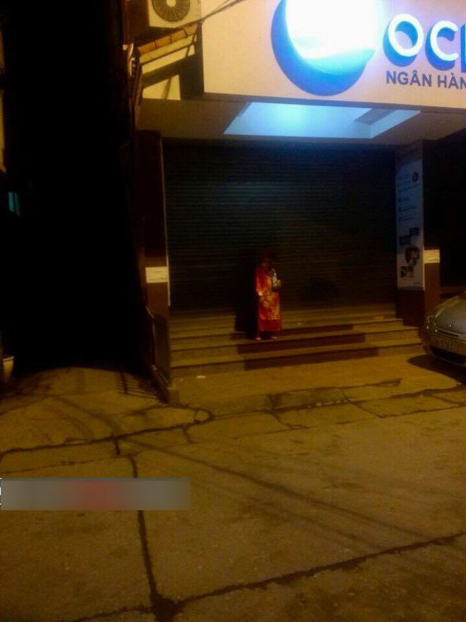 Đi kèm với dòng trạng thái, cô nàng chia sẻ thêm 3 hình ảnh một người không biết nam hay nữ mặc áo quan đỏ dài. Do trời quá tối nên không thể nhìn rõ mặt. Mọi chuyện sẽ chẳng có gì đáng nói khi người này xuất hiện đúng 12h đêm.