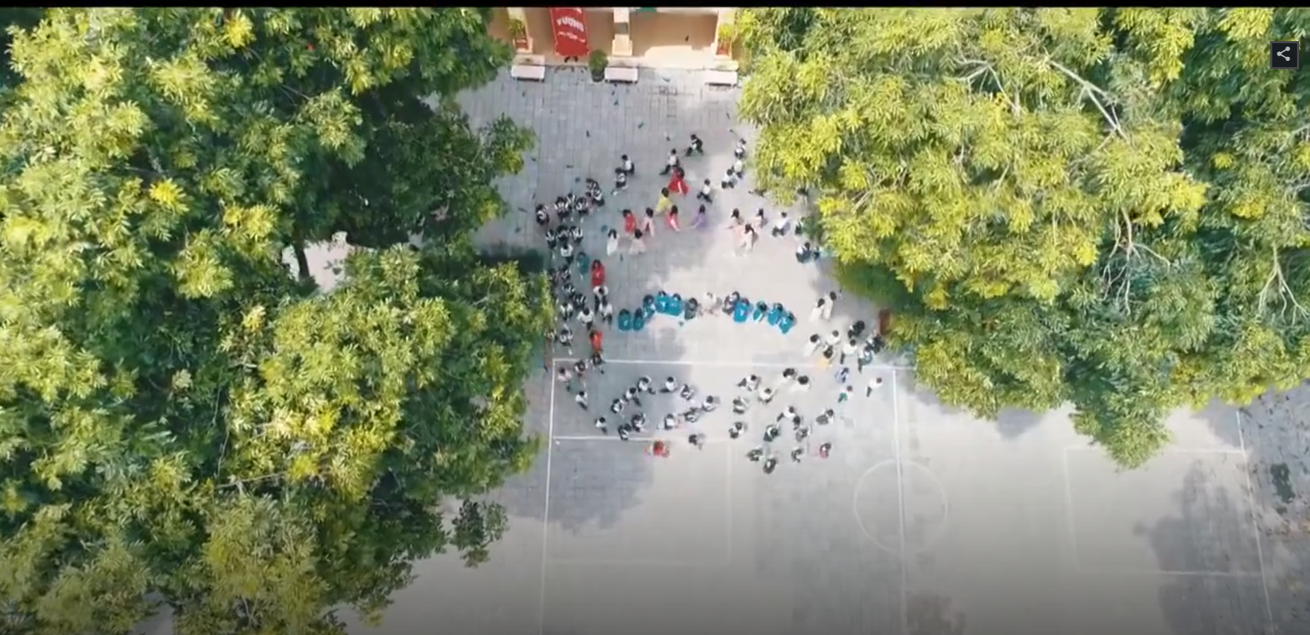 Trường Trưng Vương “chịu chơi” tới mức dùng cả flycam - máy bay camera để ghi lại những khoảnh khắc các em học sinh nghêu ngao hát bên cửa sổ và đội hình được các em xếp vô cùng đẹp mắt trên sân trường.
