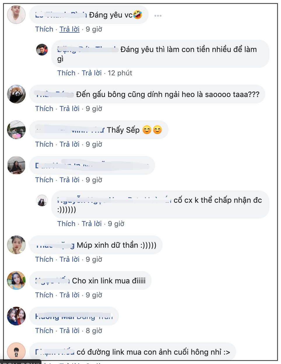 Nhưng cái chính ở đây là dù hàng nhận về sai so với hàng đặt, thì cả người mua lẫn cư dân mạng đều được một phen phì cười và hết lời khen ngợi độ đáng yêu của món hàng này. Khi đăng tải lên FB, rất nhiều người đã bình luận: ”Ôi, hàng nhận về xinh thế. Cho xin link mua nào” khiến khổ chủ ”dở khóc dở cười” vì không ngờ ”hàng fake” lại được yêu thích hơn cả ”hàng chuẩn”.