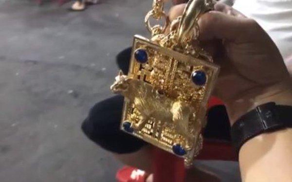 Khi được hỏi, ông chủ quán ốc tiết lộ rằng, số vàng anh đeo trên người lên tới 100 lượng vàng, xấp xỉ 4 tỷ đồng. Giá trị nhất phải kể đến đó là sợi dây chuyền mặt hình con mèo độc đáo nặng hơn 2 kg, khoảng hơn 1 tỷ đồng.