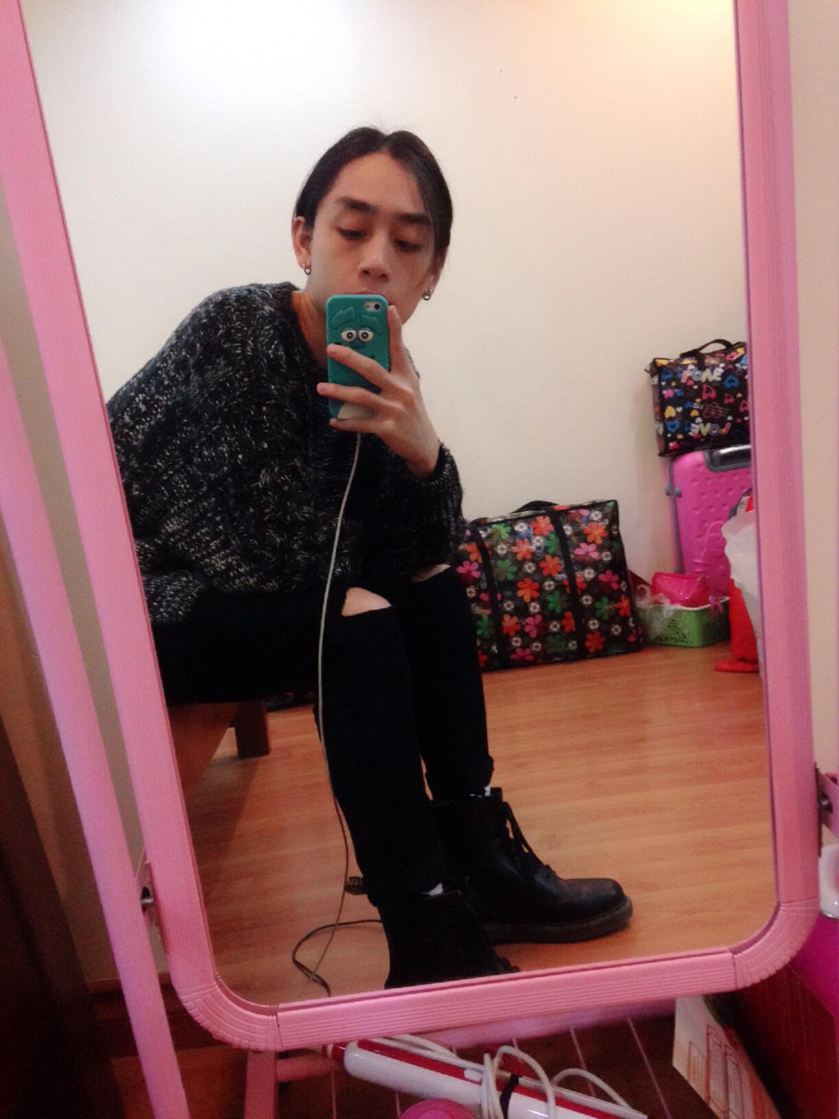 Đây là bức ảnh tóc dài và mặc quần rách của Tuấn, khiến ông ngoại phải đích thân vào bình luận nhắc nhở.