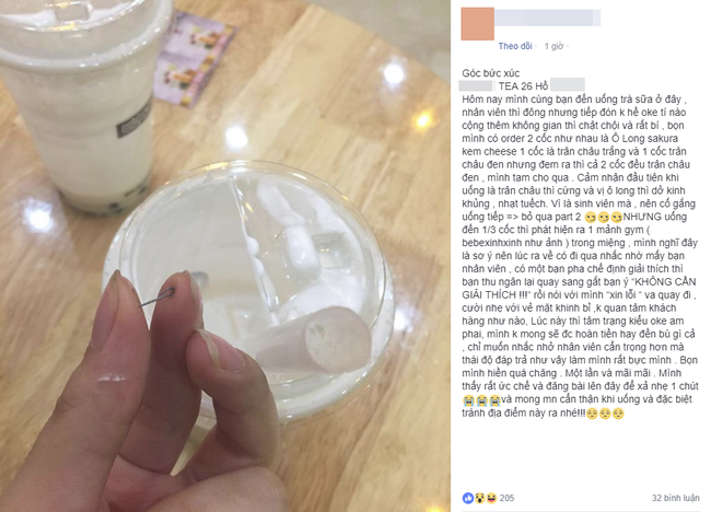 Lúc này thì tâm trạng kiểu ok I'm fine, mình không mong sẽ được hoàn tiền hay đền bù gì cả, chỉ muốn nhắc nhở nhân viên cẩn trọng hơn mà thái độ đáp trả như vậy làm mình rất bực. Bọn mình hiền quá chăng? Một lần và mãi mãi. Mình thấy rất ức chế và đăng bài lên đây để xả nhẹ 1 chút. Mong mọi người cẩn thận khi uống và đặc biệt tránh địa điểm này ra nhé!“, nữ hành khách bức xúc.