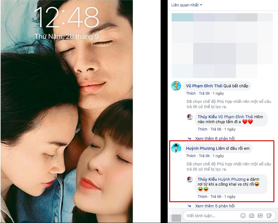 Mới đây nhất, Huỳnh Phương vừa trải qua một phen “điêu đứng” khi diễn viên Thúy Kiều - thành viên nhóm hài FAPtv bất ngờ đăng tải bức ảnh ghép của cô với cặp đôi Sĩ Thanh - Huỳnh Phương, cùng dòng trạng thái: “Đây mới là ảnh gốc đầy đủ nè, anh đừng giấu giếm nữa Huỳnh Phương”.