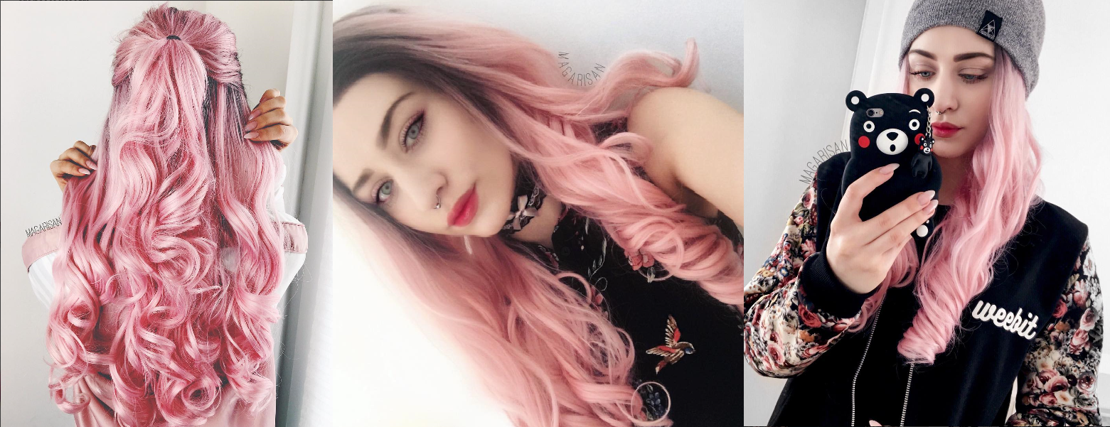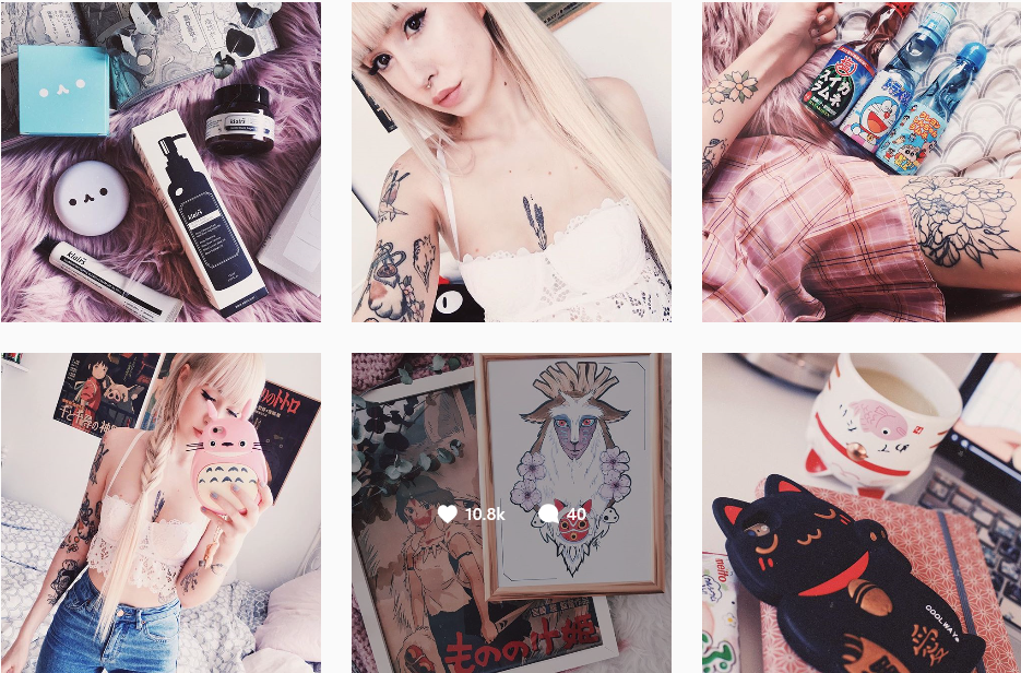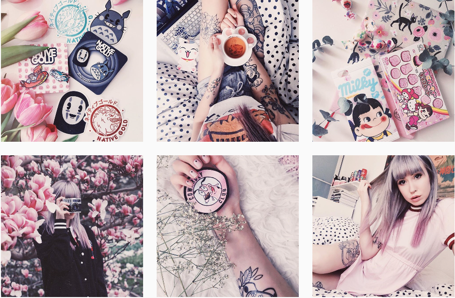 Dạo quanh Instagram của @Magarisan, sẽ dễ thấy cô nàng “cuồng si” phong cách Kawaii Nhật Bản ngọt ngào, dễ thương. Từ áo váy cho đến phụ kiện như tất vớ, giày dép, ốp điện thoại đều mang màu hồng và ngay cả chính khổ chủ cũng nhuộm tóc hồng toàn tập. @Magarisan là một designer đồ họa, vậy nên không khó gì để cô nàng thiết kế cho “căn nhà” trên Instagram của mình đẹp long lanh đúng như sở thích yêu mến phong cách Kawaii.