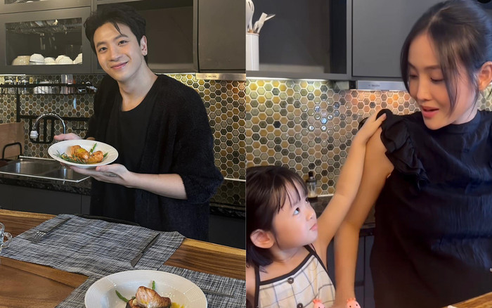 Trước mâm cơm do chồng đích thân vào bếp, Trương Mỹ Nhân khá vui vẻ thưởng thức và cho "nửa kia" 9 điểm. Tuy nhiên với ái nữ Bona, nhóc tỳ nhất quyết chỉ chấm cho bố 1 điểm. Dù được mẹ thuyết phục rằng bữa ăn rất ngon, cô bé vẫn không thay đổi quyết định.
