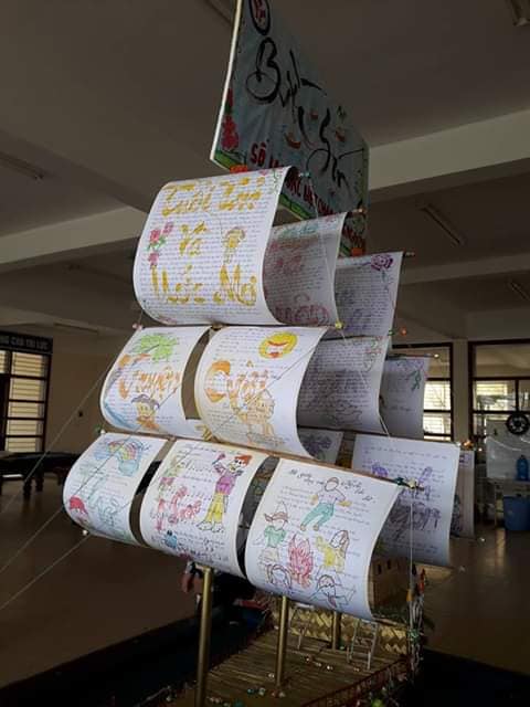 Mô hình báo trường theo phong cách hội trại của học sinh trường Hữu Nghị (Lai Châu). Ảnh: Nguyễn Khánh.