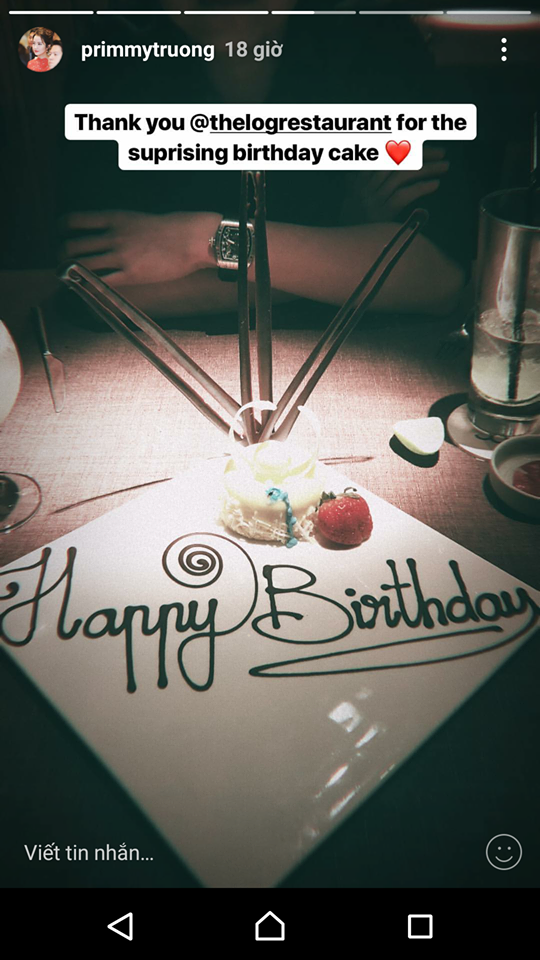 Mới đây, dân tình lại có thêm bằng chứng khẳng định mối quan hệ giữa Phan Thành - Primmy Trương khi theo dõi ảnh cô nàng khoe trên Instagram. Trong ngày sinh nhật, cô được “người ấy” chăm sóc chu đáo và tặng hoa cực kỳ lãng mạn… Dù không để lộ mặt nhưng những hình ảnh của Primmy Trương đều gián tiếp khẳng định người kia chính là Phan Thành. Chiếc áo này đã được Phan Thành diện rất nhiều lần, còn chiếc đồng hồ kia chính là chiếc đồng hồ mà Phan Thành đeo trong tấm ảnh ôm cô gái giấu mặt!
