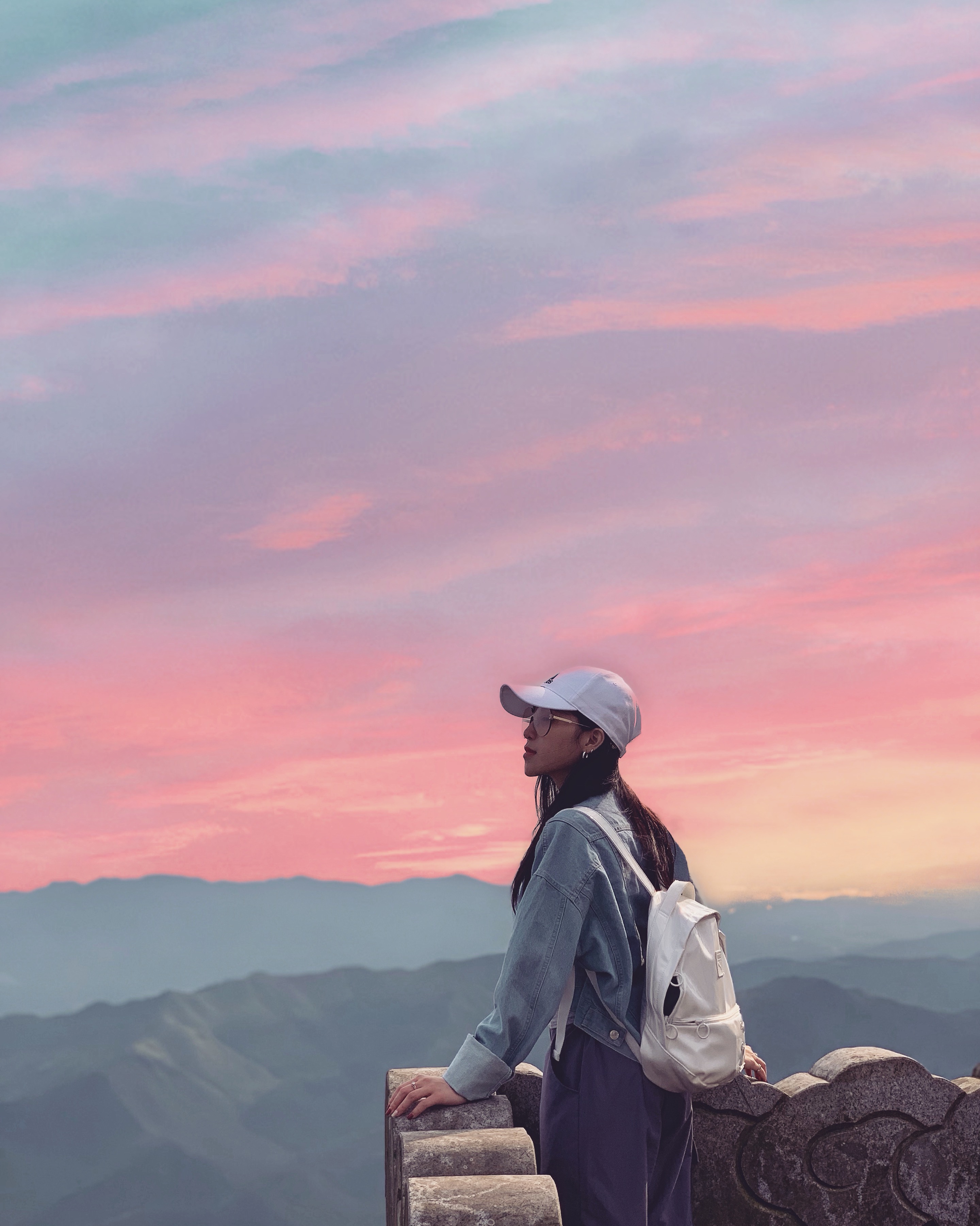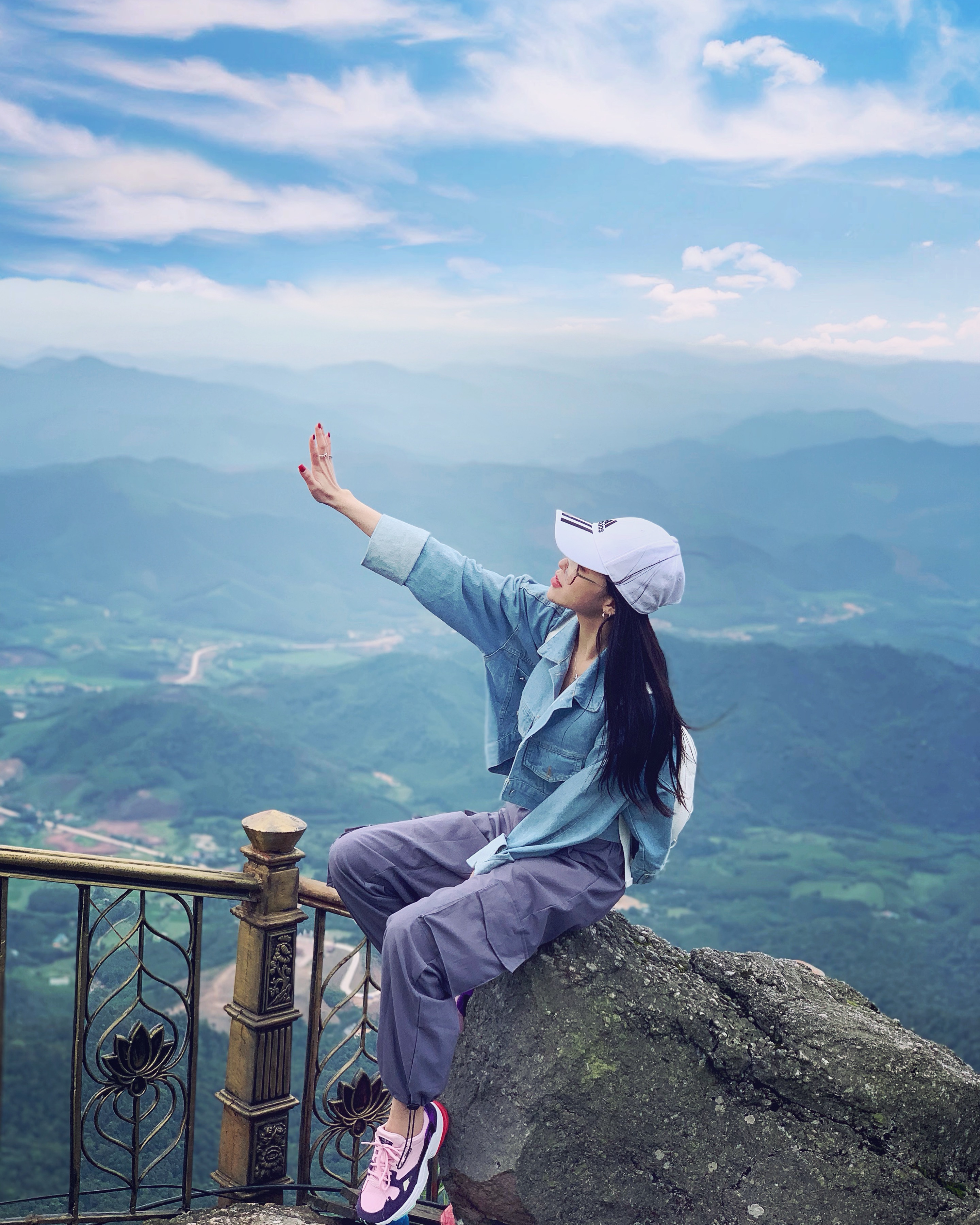 Với trang phục năng động, cô gái Ngọc Ánh thỏa thích khám phá đỉnh núi Yên Tử - một địa danh nổi tiếng ở Quảng Ninh, nơi gắn liền với tín ngưỡng Phật Giáo Việt Nam.