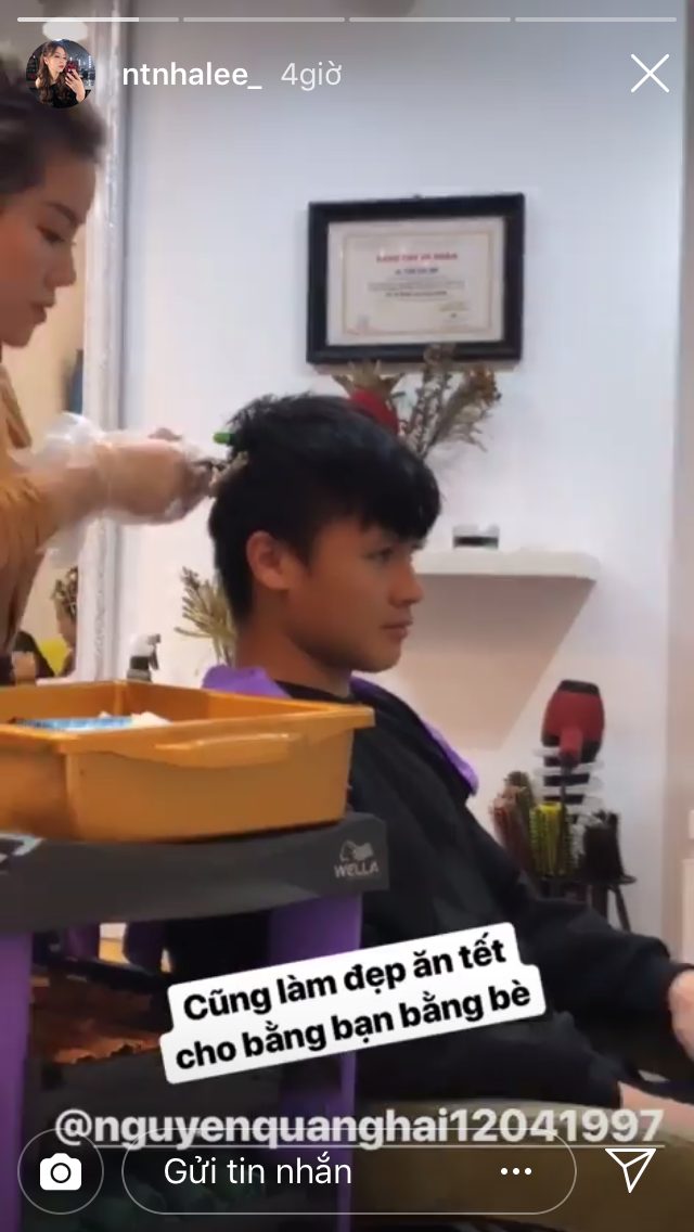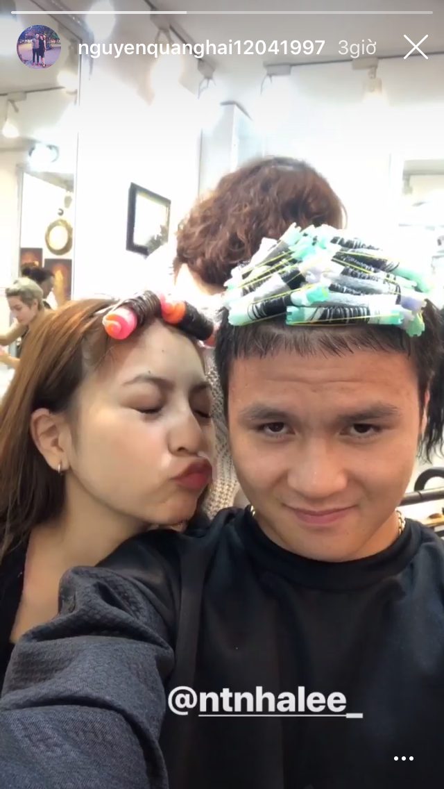 Ngay khi vừa từ UAE trở về, Quang Hải đã cùng bạn gái Nhật Lê đi làm tóc đón Tết. Cặp đôi cùng cuốn lô và chụp ảnh đáng yêu nhí nhảnh bên nhau. Trên Instagram của cả 2 người đều tỏ ra vô cùng háo hứng với kiểu tóc mới của đối phương.