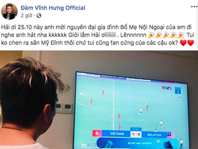 Không chỉ Quang Hải hạnh phúc, nhiều khán giả hâm mộ cũng bày tỏ tình cảm dành cho chàng tuyển thủ Việt Nam. Cụ thể, ca sĩ Đàm Vĩnh Hưng đã gửi lời mời gia đình Quang Hải đến xem đêm nhạc anh sắp biểu diễn tại Hà Nội.
