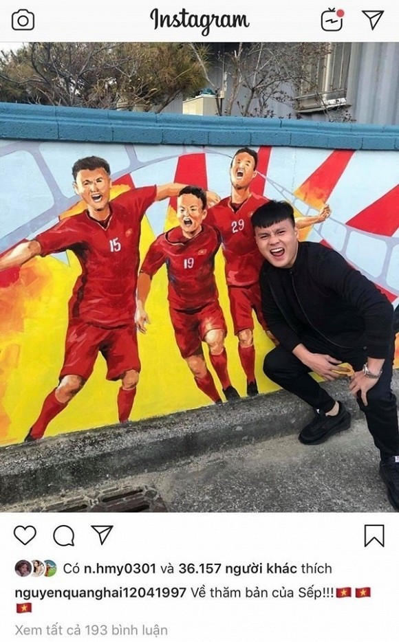 Mới đây, khi đăng ảnh về thăm nhà của HLV Park Hang Seo ở huyện Sancheong, tỉnh Nam Gyeongsang, Quang Hải đã nhận về vô số lượt thích và bình luận. Đáng chú ý, bạn gái tin đồn - Huyền My cũng nhanh chóng vào “thả tim” bức ảnh trên. Trong lúc dân tình đang tự hỏi ai mới là bạn gái thật sự của cầu thủ số 19 thì hành động lần này của Huyền My khiến nhiều người cho rằng cô nàng đang khẳng định chủ quyền với Quang Hải.