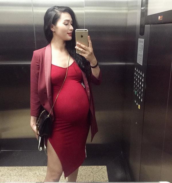Mẹ Nguyễn Trang sexy hết mức với váy ôm dù bầu vượt mặt.