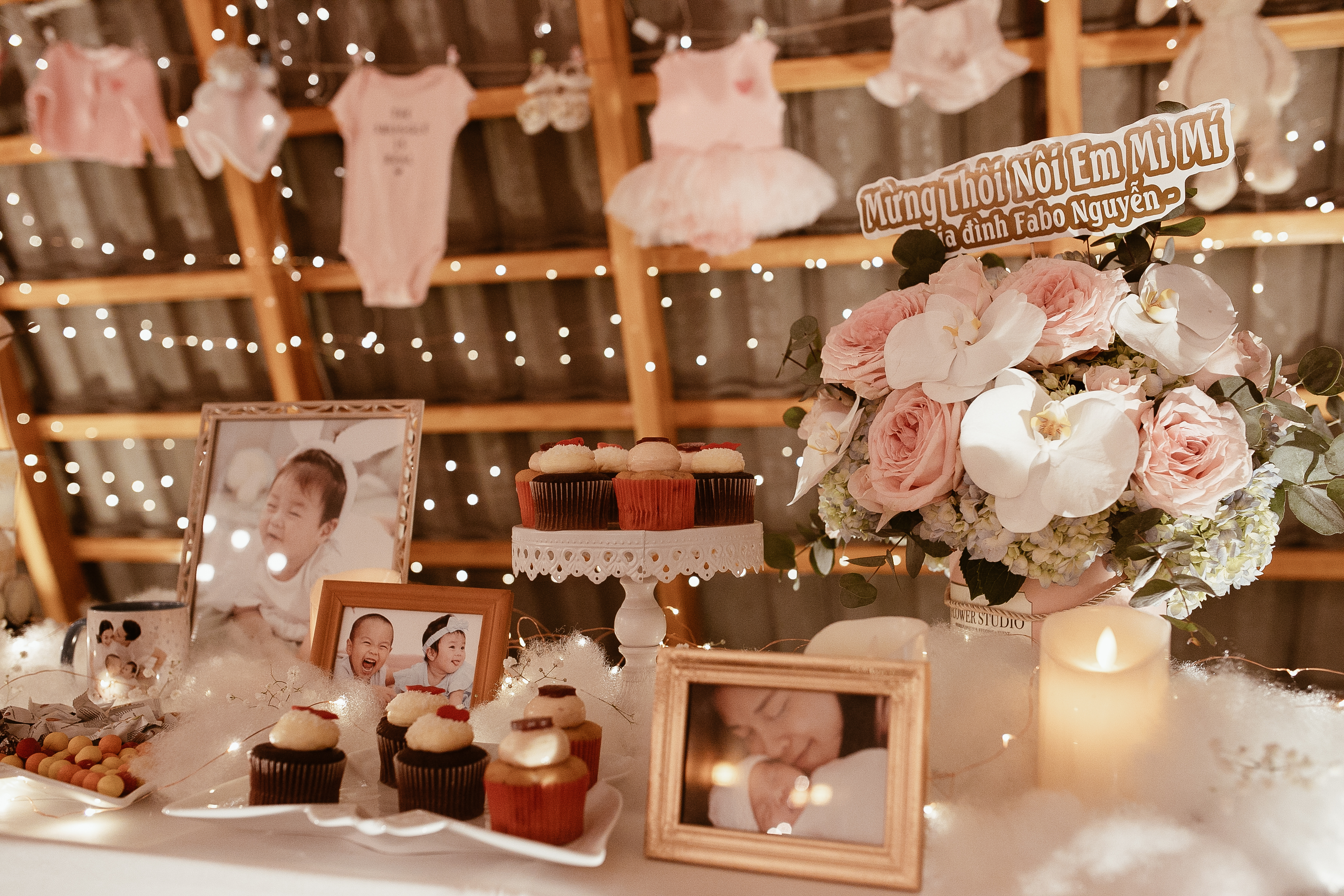 Không gian tiệc thôi nôi con gái của gia đình Quốc Nghiệp - Ngọc Mai