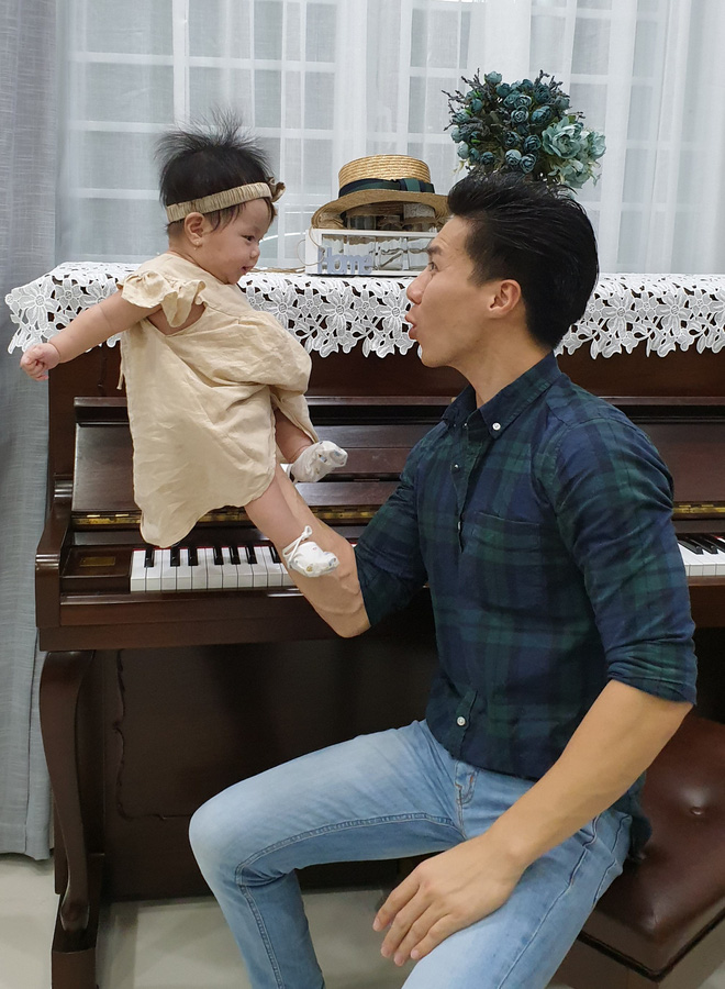 Clip Quốc Nghiệp làm xiếc với con gái 6 tháng tuổi.