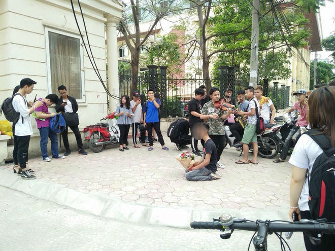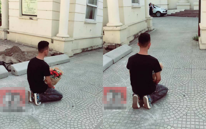 Chiều 15/5, trên mạng xã hội xôn xao vụ việc một nam thanh niên cầm bó hoa trên tay quỳ gối trước cổng Trường Học viện âm nhạc Quốc Gia Việt Nam không rõ là tỏ tình hay xin lỗi bạn gái.
