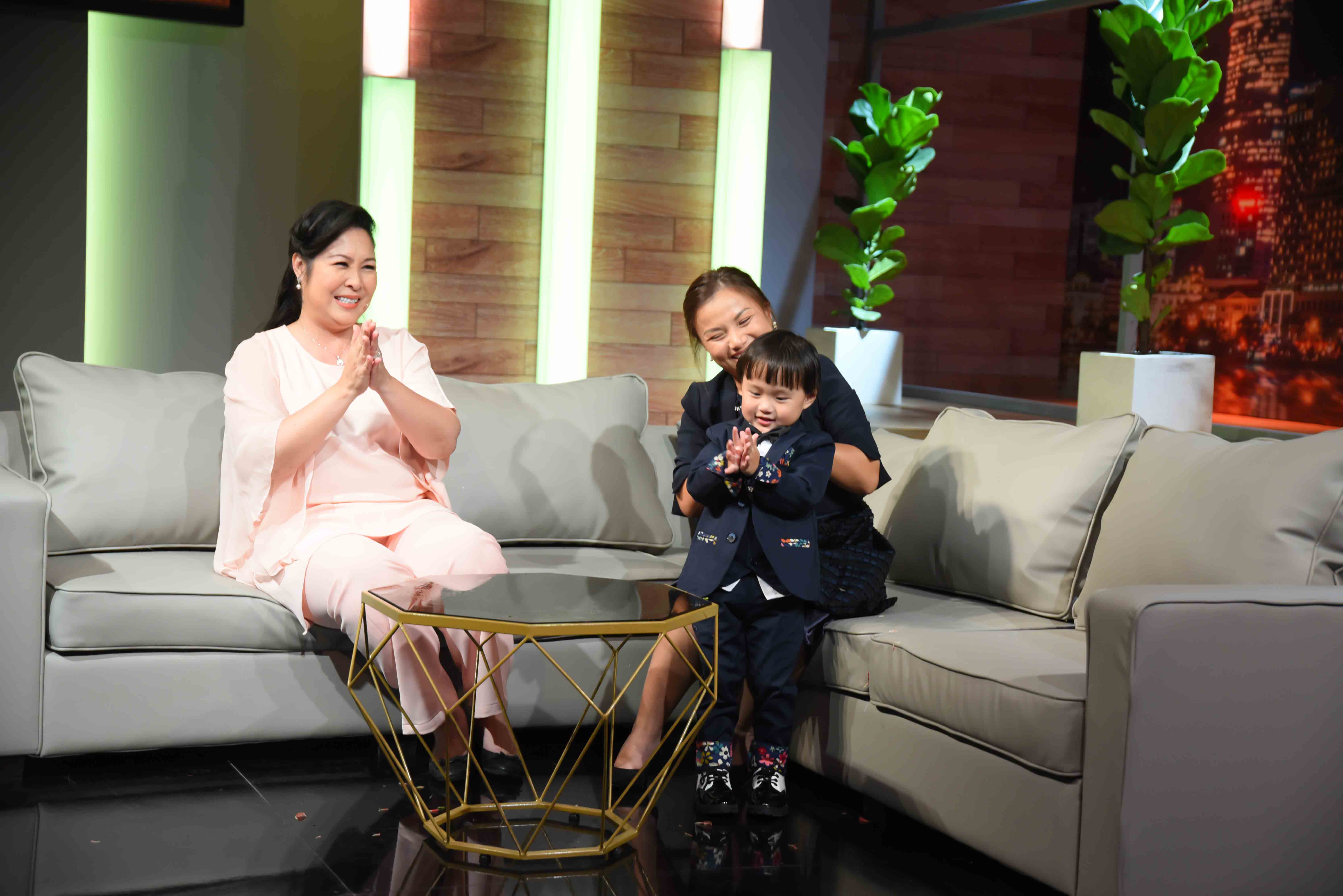 Quỳnh Trần JP và bé Sa tại trường quay cùng NSND Hồng Vân