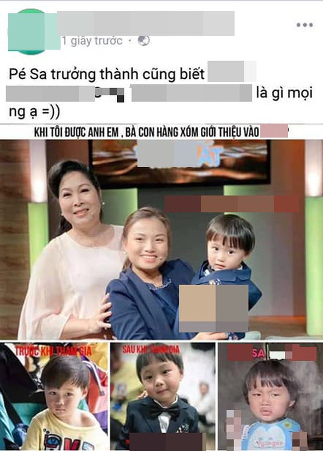 Hình ảnh của bé Sa bị một fanpage gắn với nội dung không phù hợp.