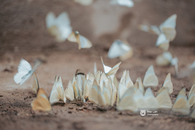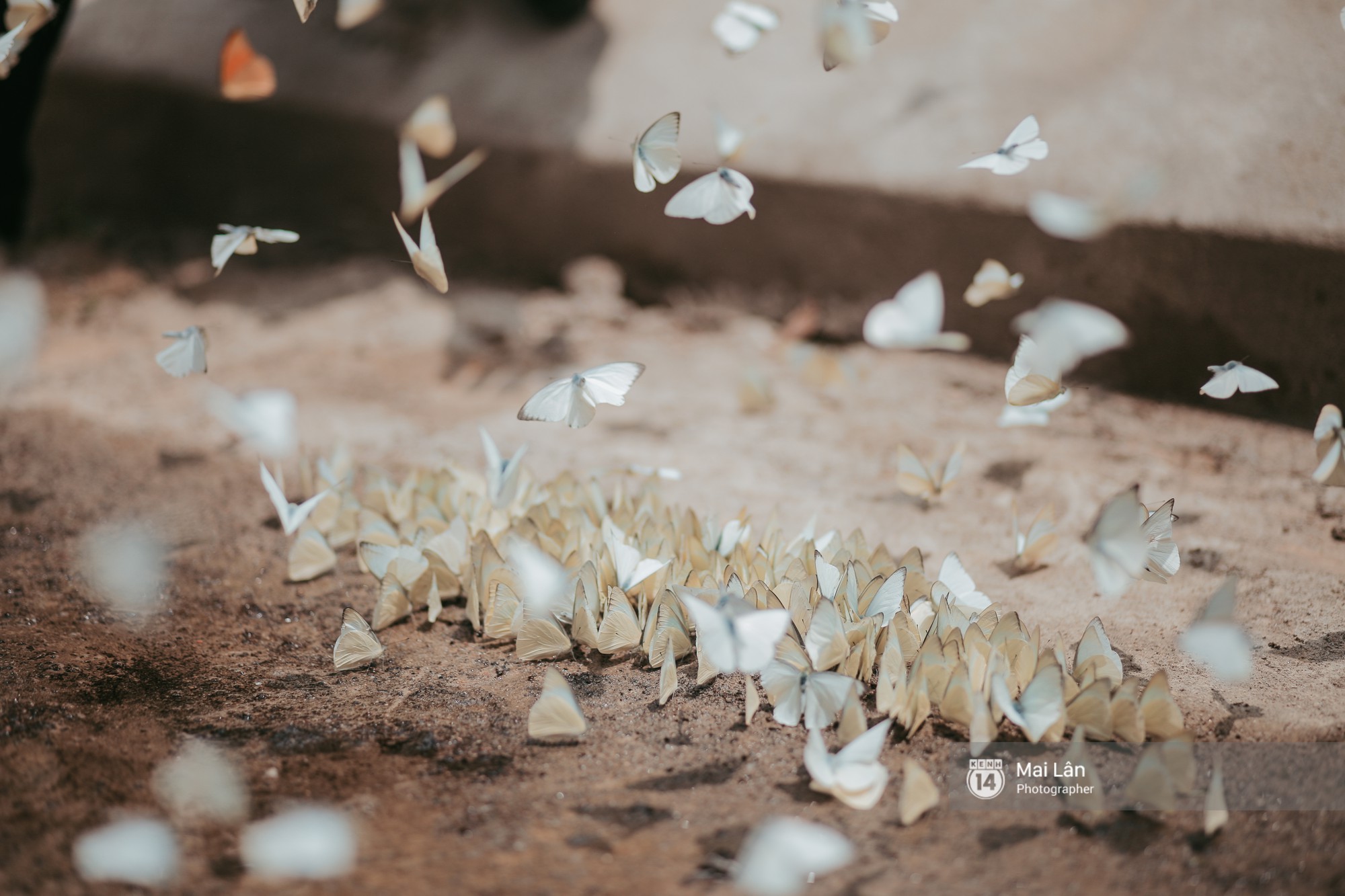 Đi vào sâu thêm, đến giữa rừng, bạn sẽ phải lặng đi vì cảnh những đàn bướm đậu li ti trên mặt đất, thành từng trảng lớn màu trắng mà chỉ đến gần hay trót tạo ra một cử động nhẹ, cả đàn bướm sẽ ngay lập tức ùa lên, cuống quýt dập dìu xung quanh. Bướm ở đây “dạn” người, thế nên chúng chẳng ngại đậu lên mũ, lên tay bạn như một “chỗ đáp” mới. Với hàng trăm loài bướm, bạn sẽ có chút hoa mắt để ngắm nhìn những cánh bướm trắng, bướm vàng, màu lam, nâu nhạt, hồng,… lấp lánh bay lượn dưới nắng.