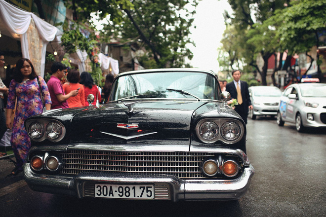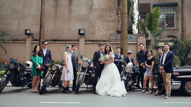 Màn rước dâu đặc biệt có sự xuất hiện của dàn xe gồm một ô tô Chevrolet Chevy Impala 1958, 4 chiếc xe máy BMW R1100r, Triumph T120, Triumph T100, XJR 400 và một số các xe khác.