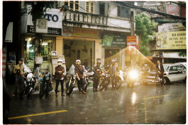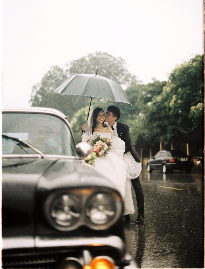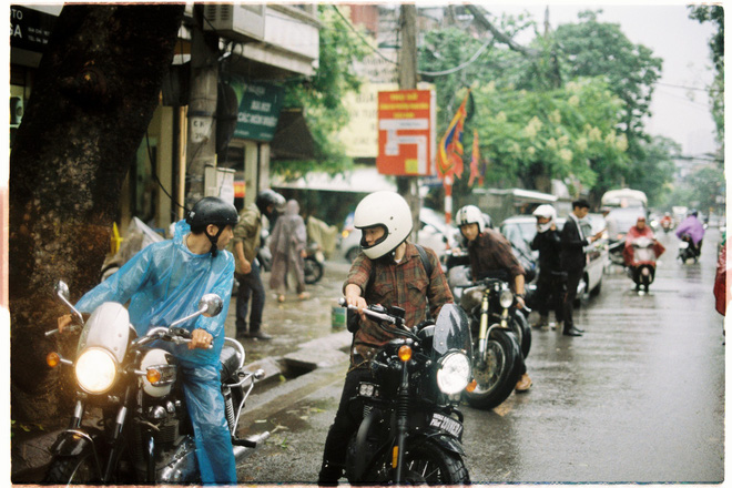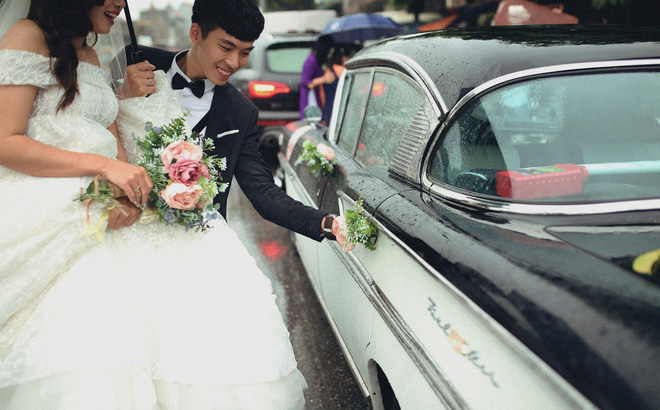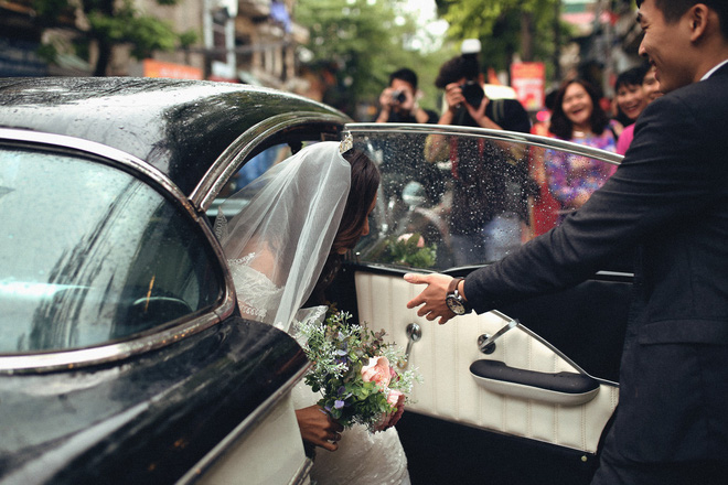 Dàn xe cổ đi một quãng đường dài khoảng 60km cả đi lẫn về từ phố Minh Khai về Thường Tín dưới trời mưa là hình ảnh tuyệt đẹp và đáng nhớ với cặp uyên ương này.