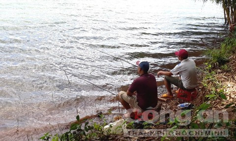 Cả mấy giờ đồng hồ, anh Hùng ngồi im, hướng mắt về phía cần câu. Lúc này, ông mặt trời đã lấp ló sau đám rừng thông nhưng cần của anh Hùng và 1 người bạn vẫn chưa nháy phao. Anh hùng kéo cần vào, thay lại mồi và tiếp tục buông mồi xuống nước.