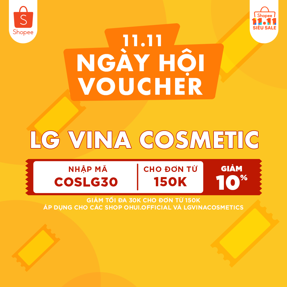 Cho đơn hàng chỉ từ 150k, có ngay mã COSLG30 giảm giá thêm 10% (tối đa 30k), áp dụng cho các shop ohui.official và lgvinacosmetics. Hạn sử dụng đến hết ngày 29/10.