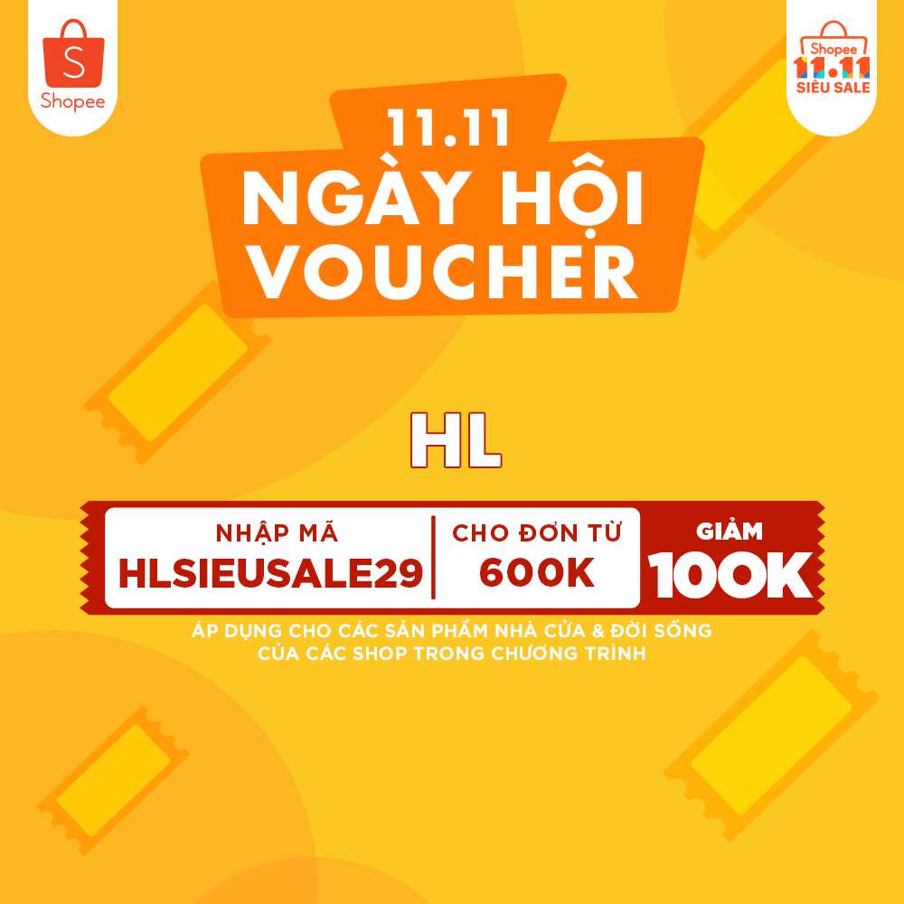Dành cho ngành hàng Nhà cửa & Đời sống của các shop tham gia chương trình, Shopee tặng mã voucher HLSIEUSALE29 giảm ngay 100k cho đơn hàng từ 600k. Hạn sử dụng đến hết ngày 29/10.