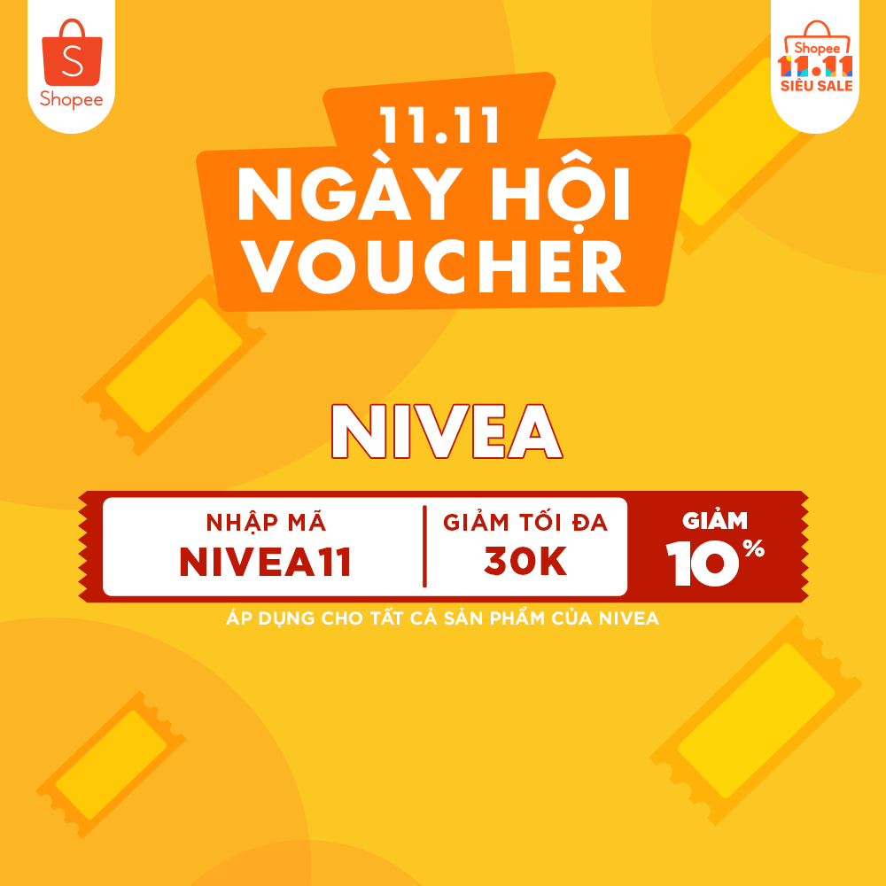 Mã giảm 10% (tối đa 30k) cho giá trị đơn hàng bất kỳ mua trên shop chính thức Nivea, áp dụng cho tất cả sản phẩm, nhập ngay NIVEA11. Hạn sử dụng đến hết ngày 29/10.